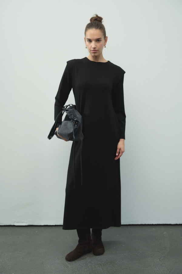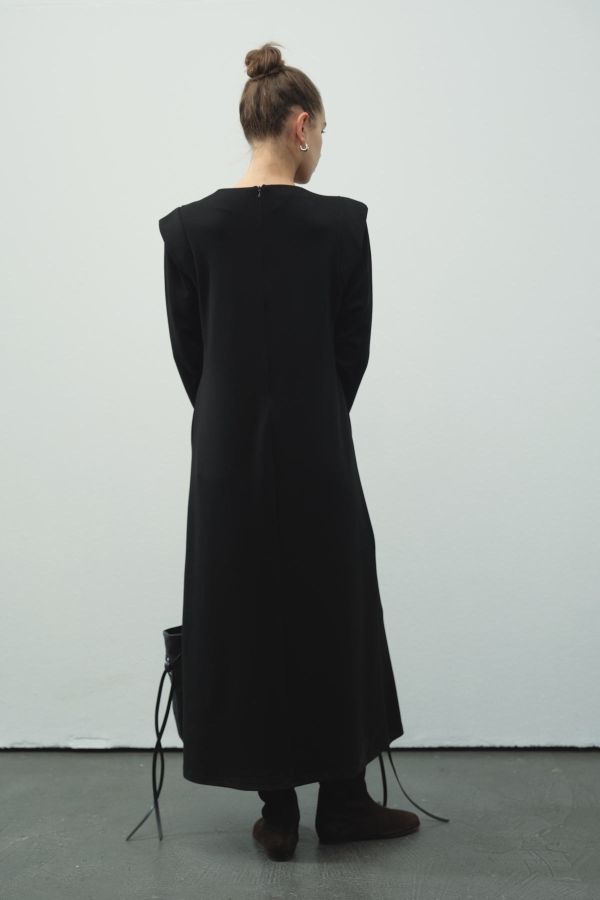 Aller Detaylı Compact Pamuklu Siyah Elbise