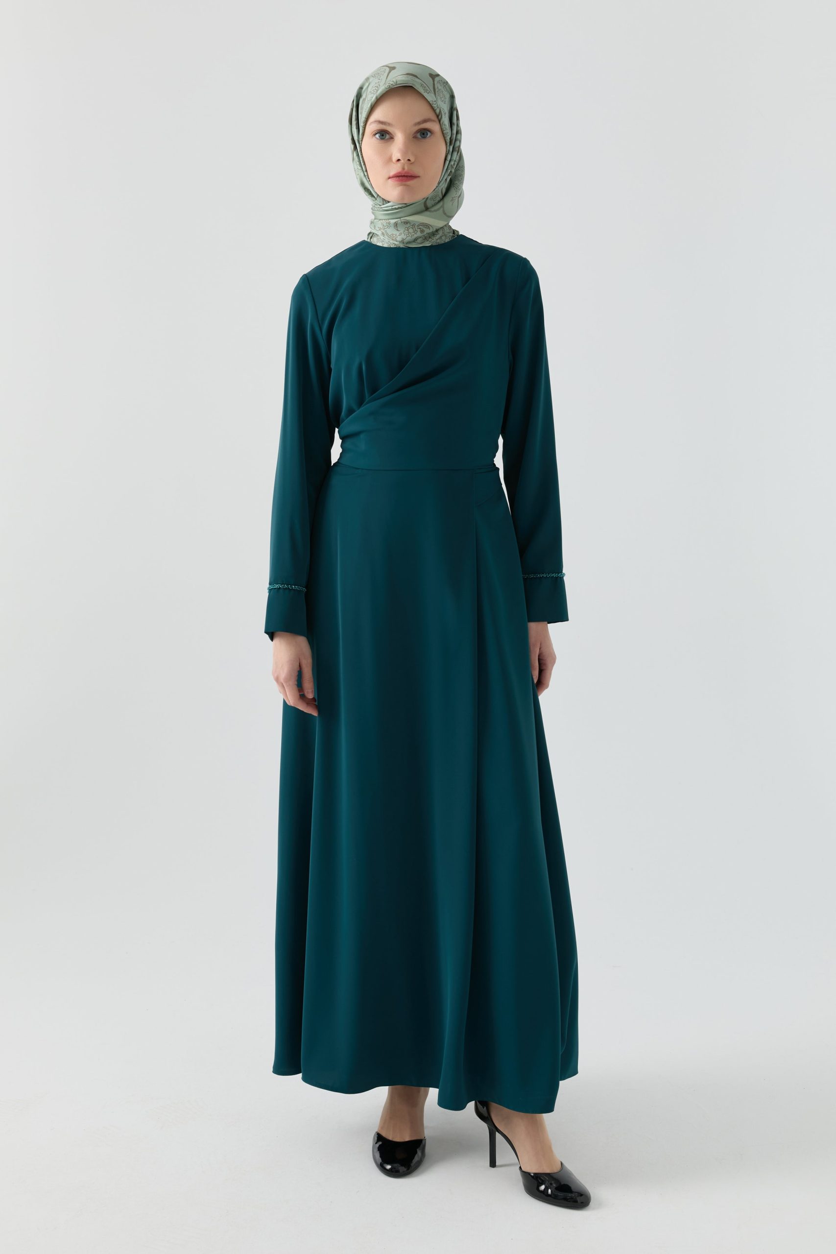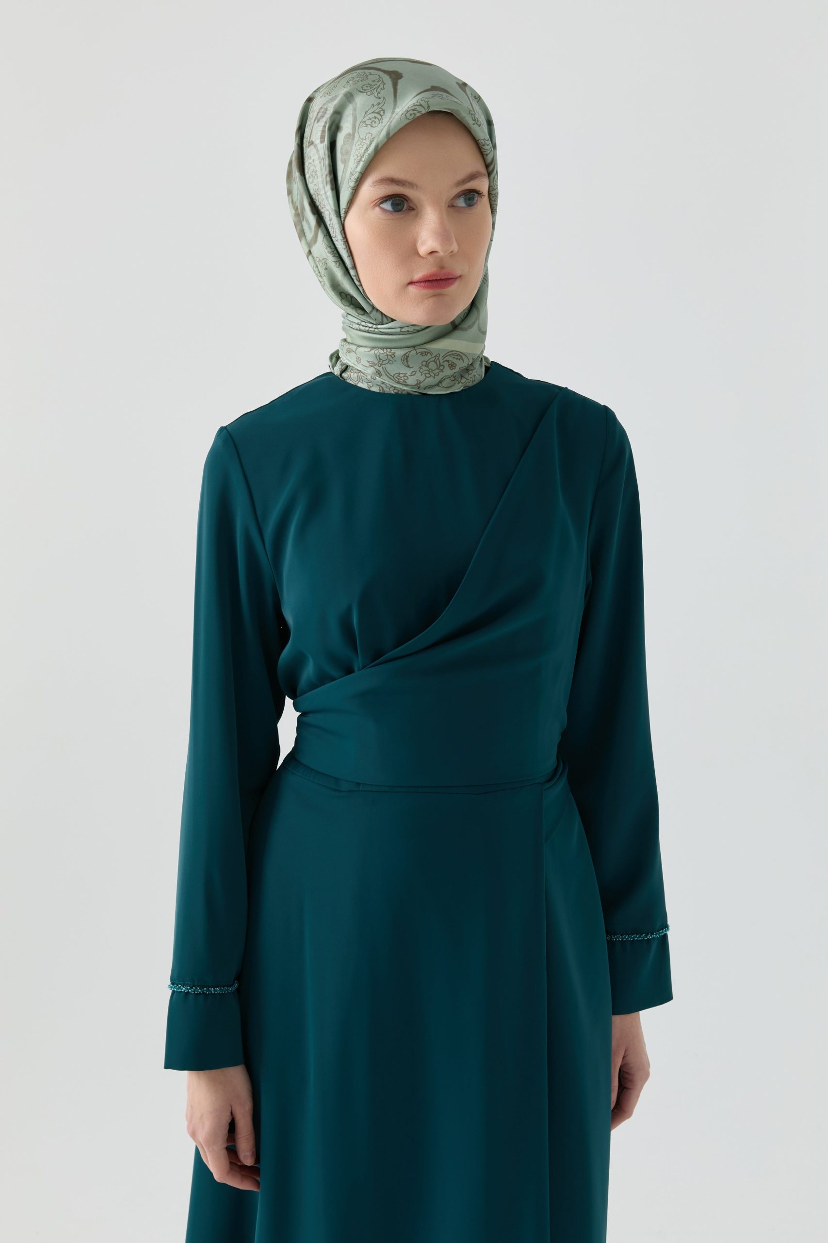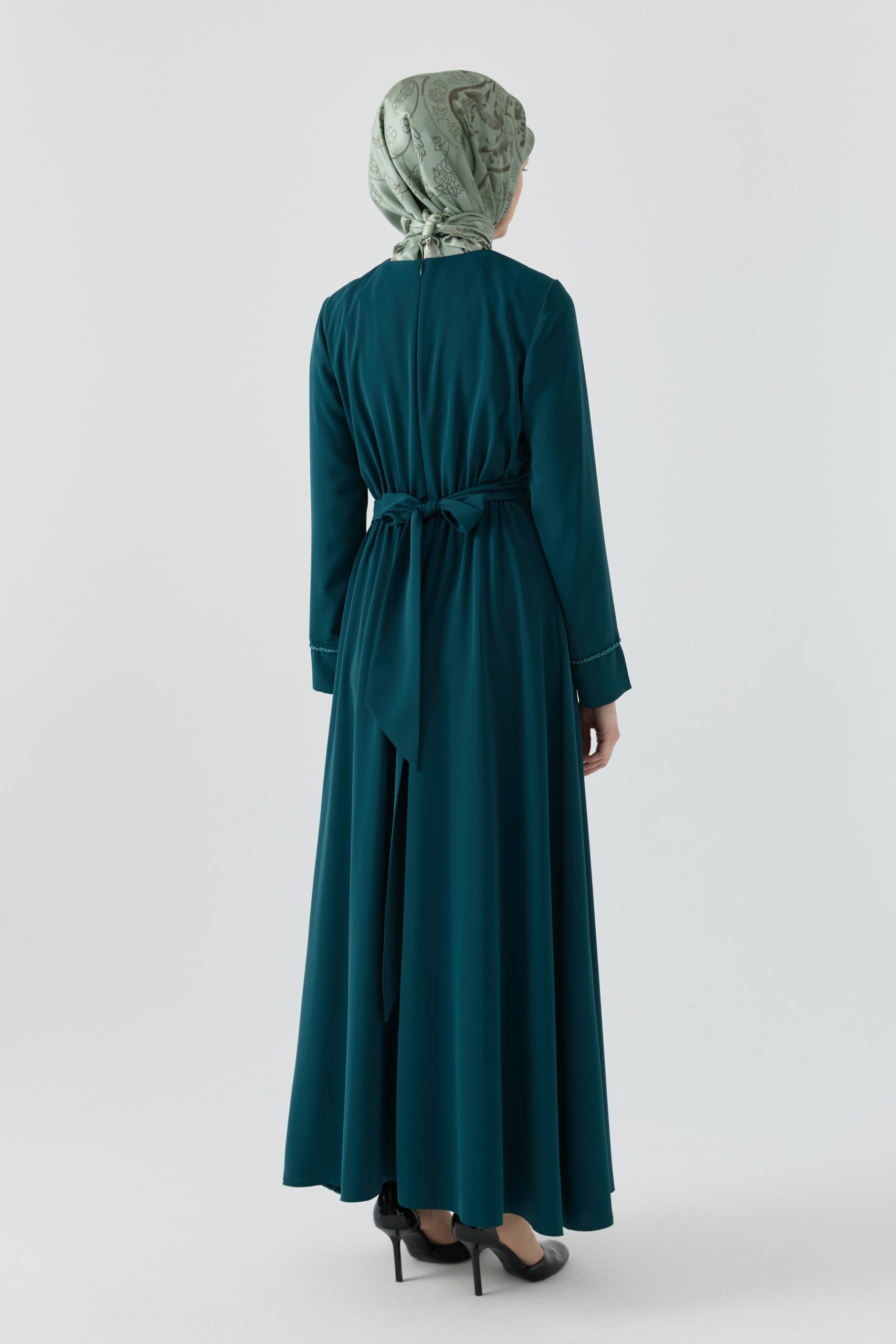 Aller Parçalı Bağlamalı Elbise – Petrol