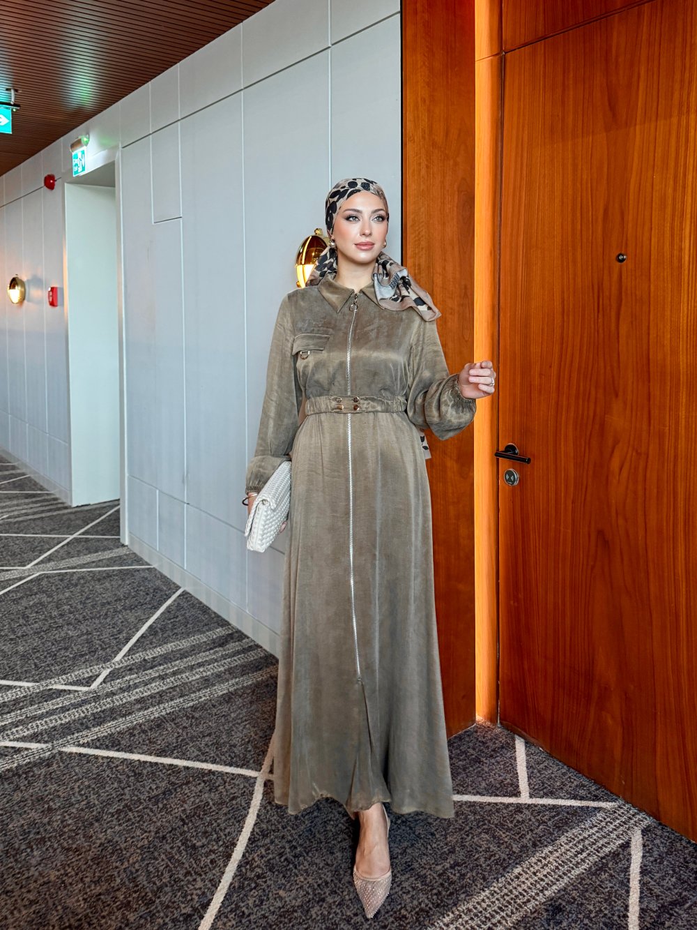 Elbise 1. Sınıf İpek Cupra Kumaştan üretilmiştir. Tam boy fermuarlı tasarımıyla kullanım kolaylığı sunar. Kol uçları lastikli olup rahat bir giyim deneyimi sağlar. Pratik cepleri bulunmaktadır.