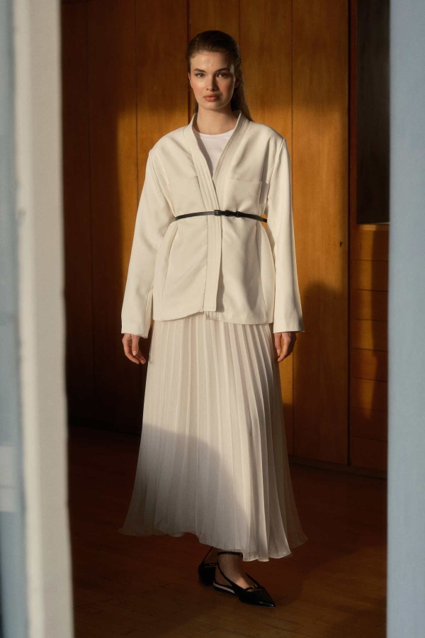 Andera Deri Kemer Detaylı Ekru Ceket