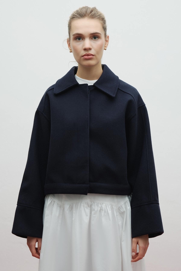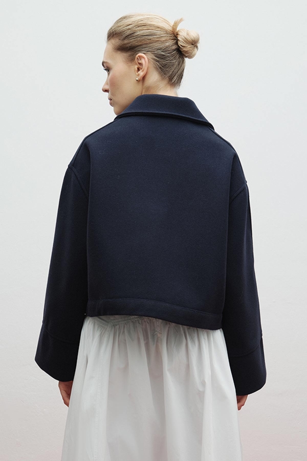 Andera Manşet Kol Koyu Lacivert Kaşe Ceket