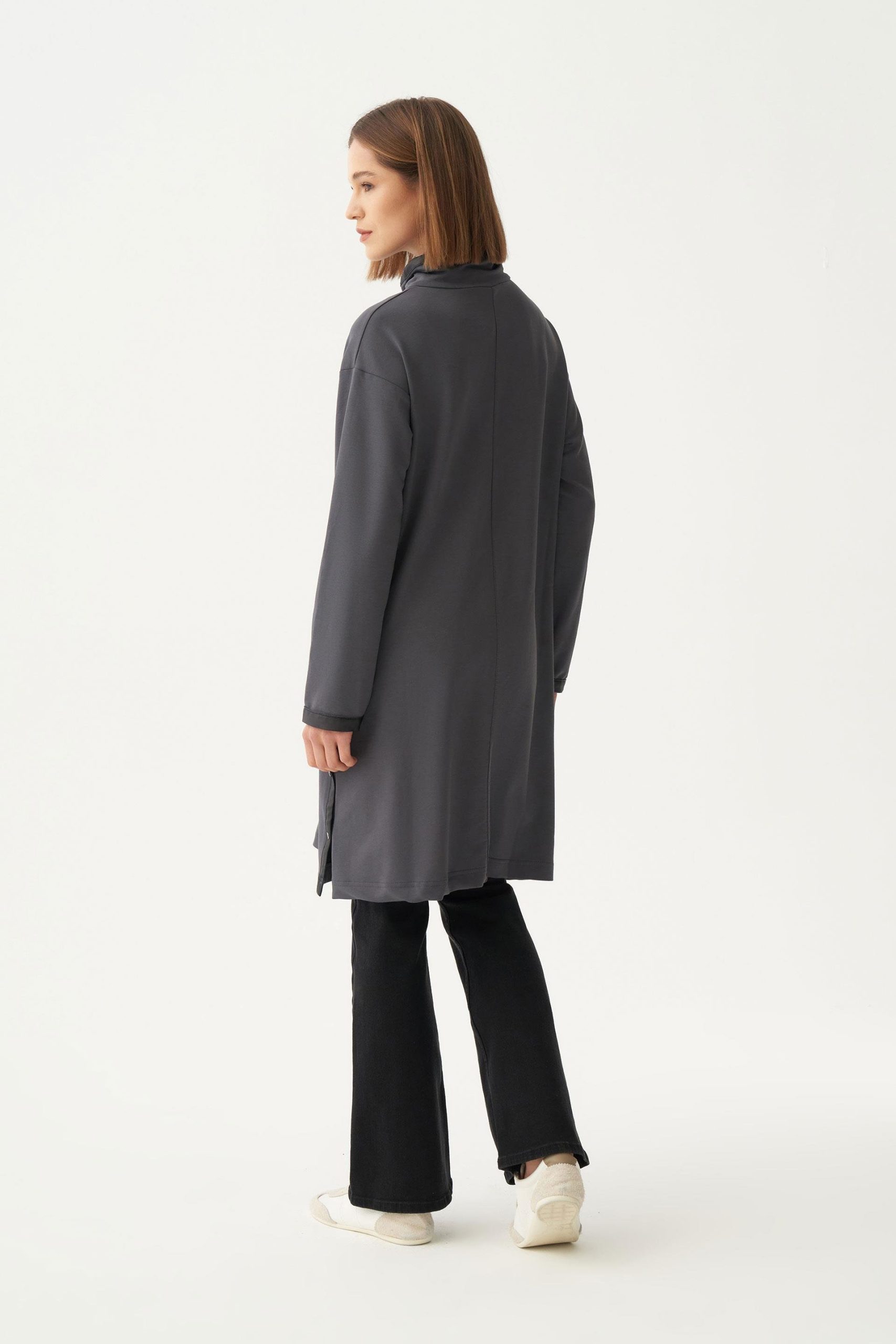 Antrasit-Deri Biyeli Pamuklu Uzun Tunik