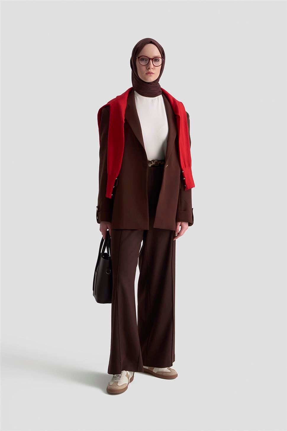 Pileli Kemerli Pantolon – Kahve