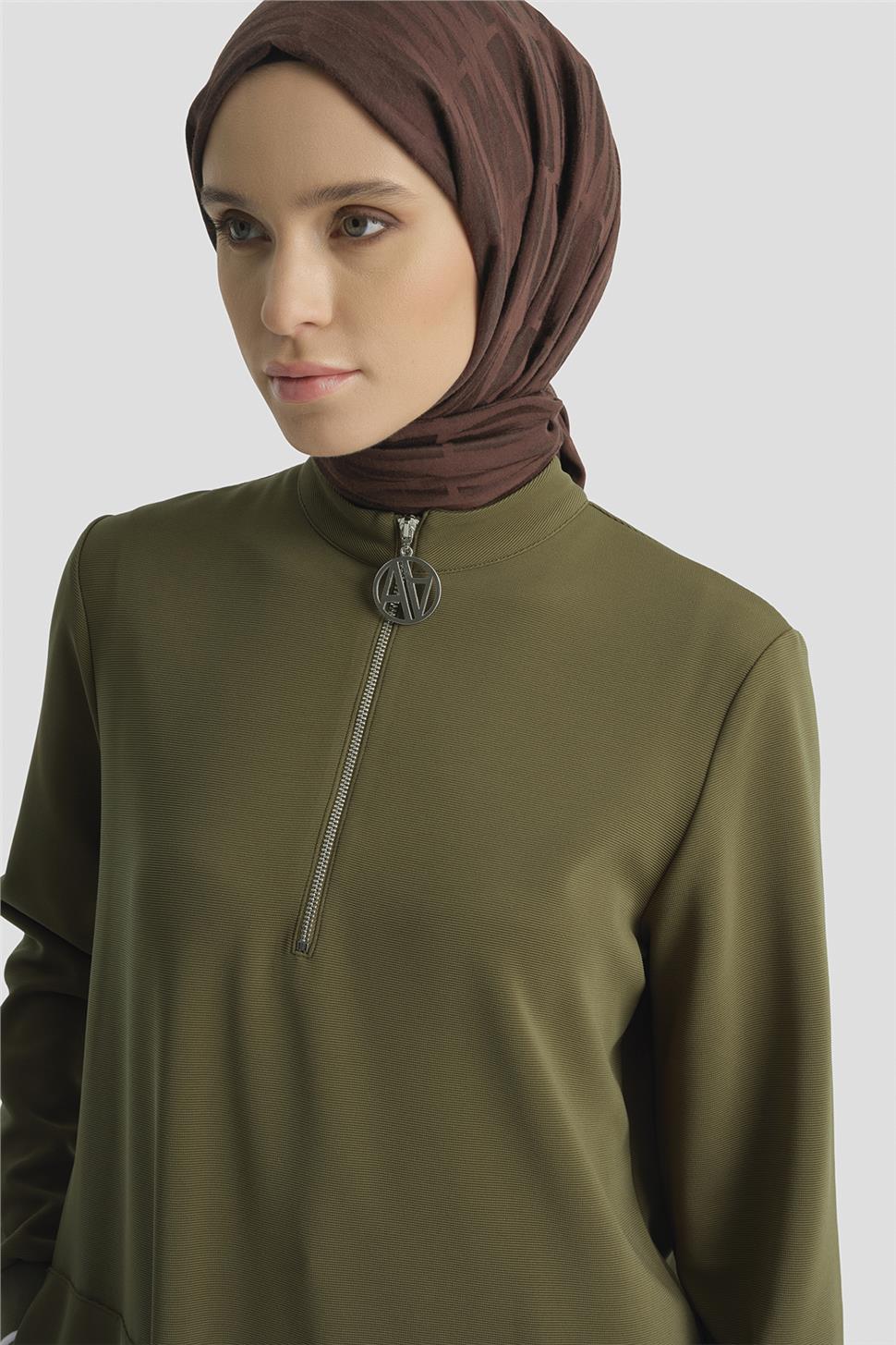 Armine Fermuar Detaylı Tunik Yağ Yeşili