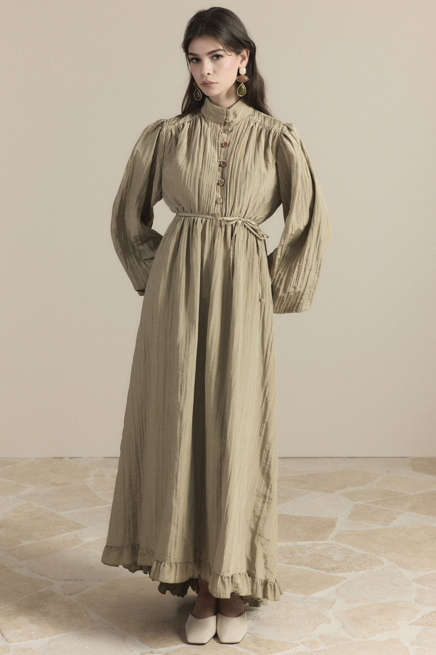 Asimetrik Fırfırlı Pilise Elbise – Çağla
