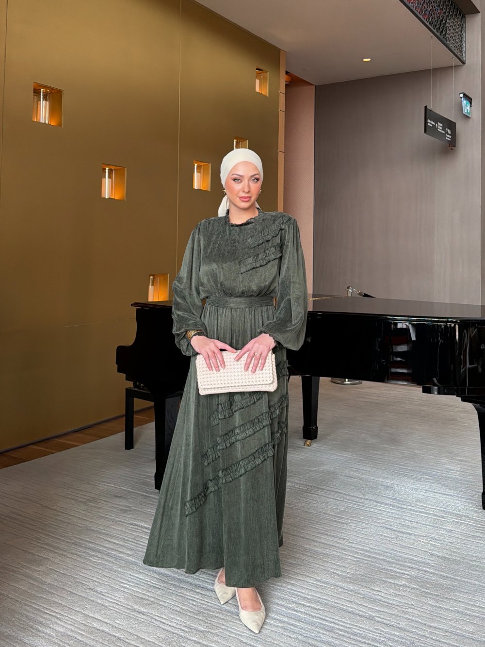 Etiketler: cupro kumaş, haki elbise, kadın modası, zarif elbise