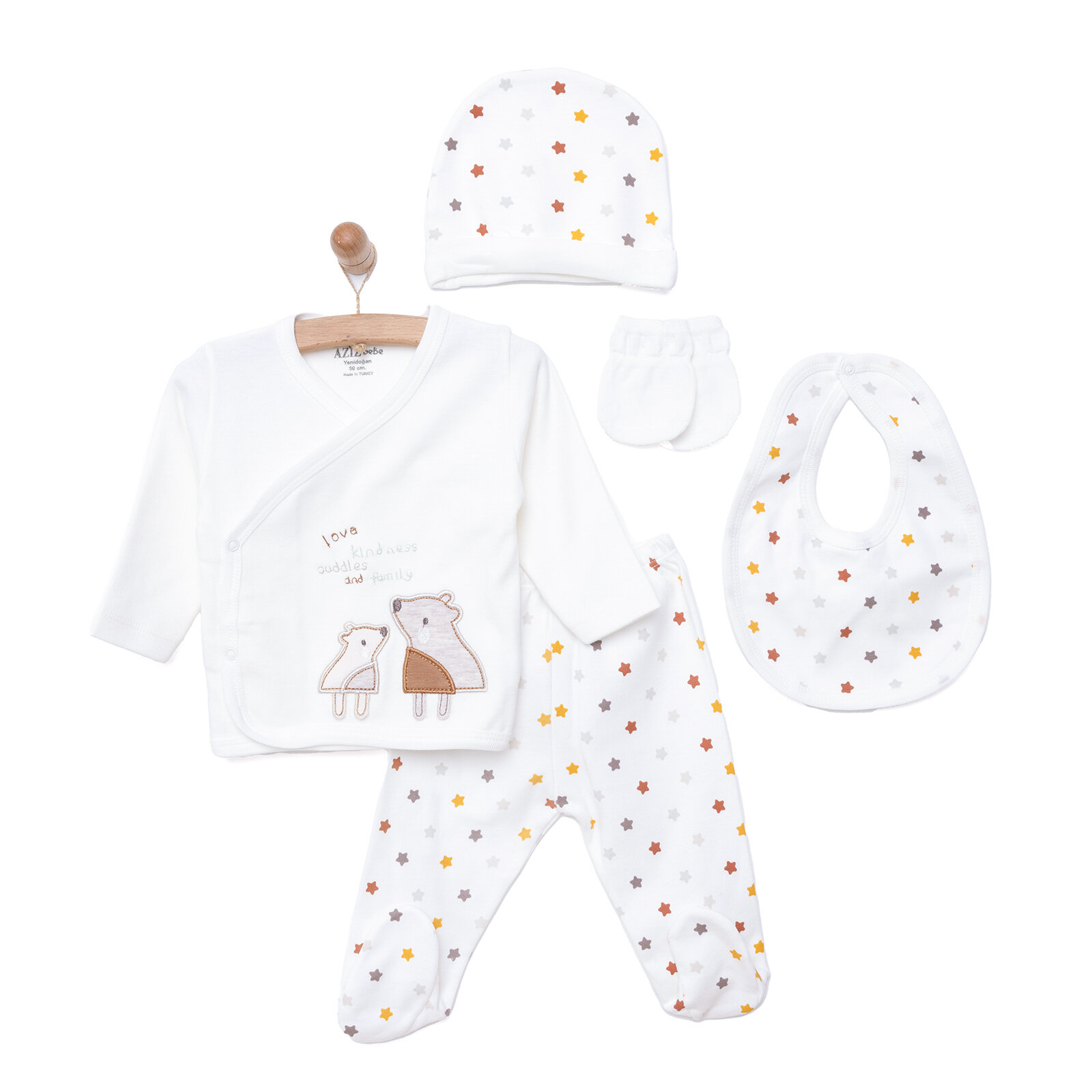 Aziz Bebe Erkek Bebek 5li Askı Hastane Çıkışı Çıtçıtlı Yaka