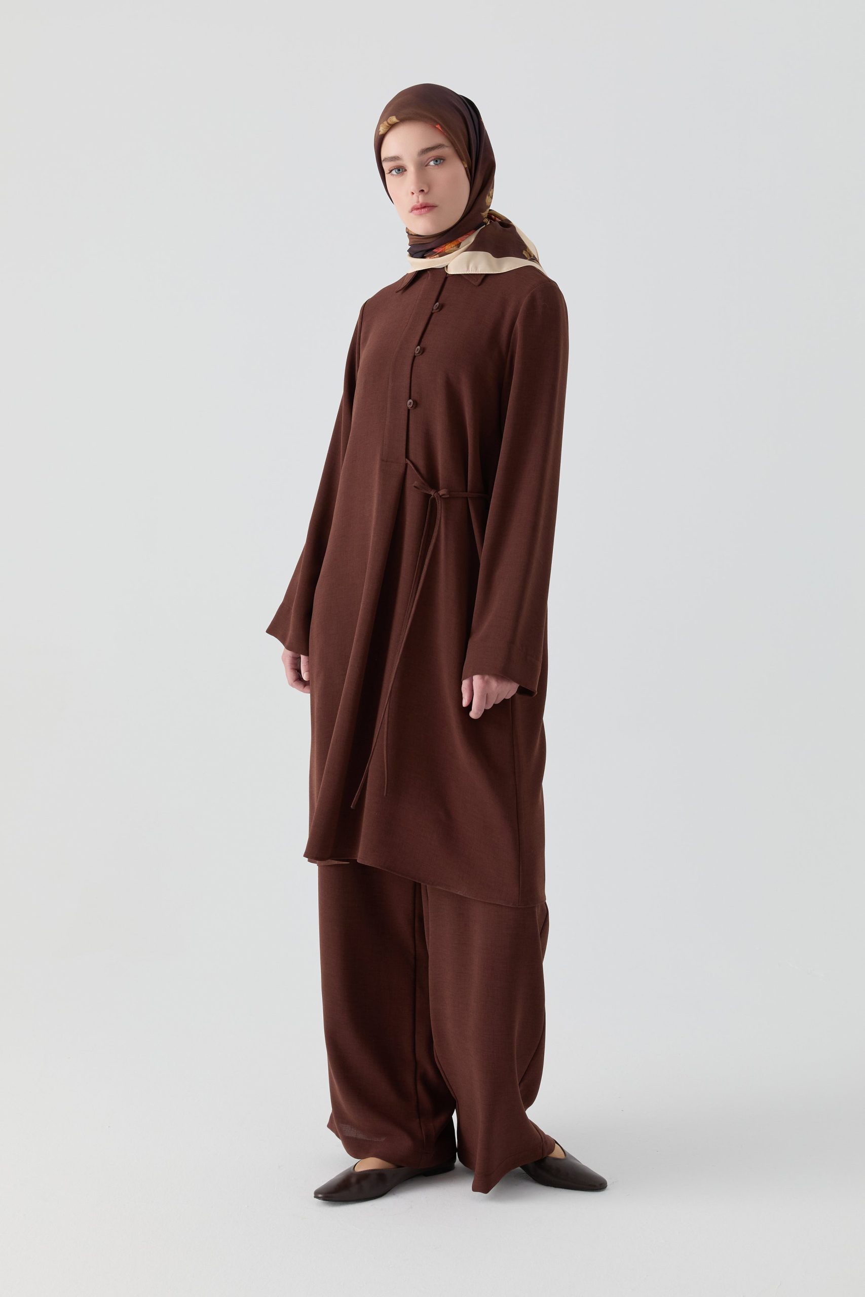 Bağcık Detaylı Tunik Pantolon Takım – Toprak