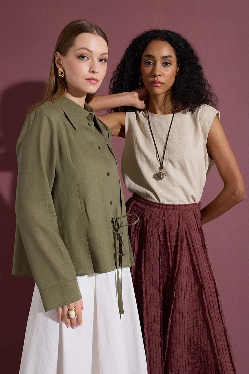 Bağcıklı Kimono Gömlek Haki