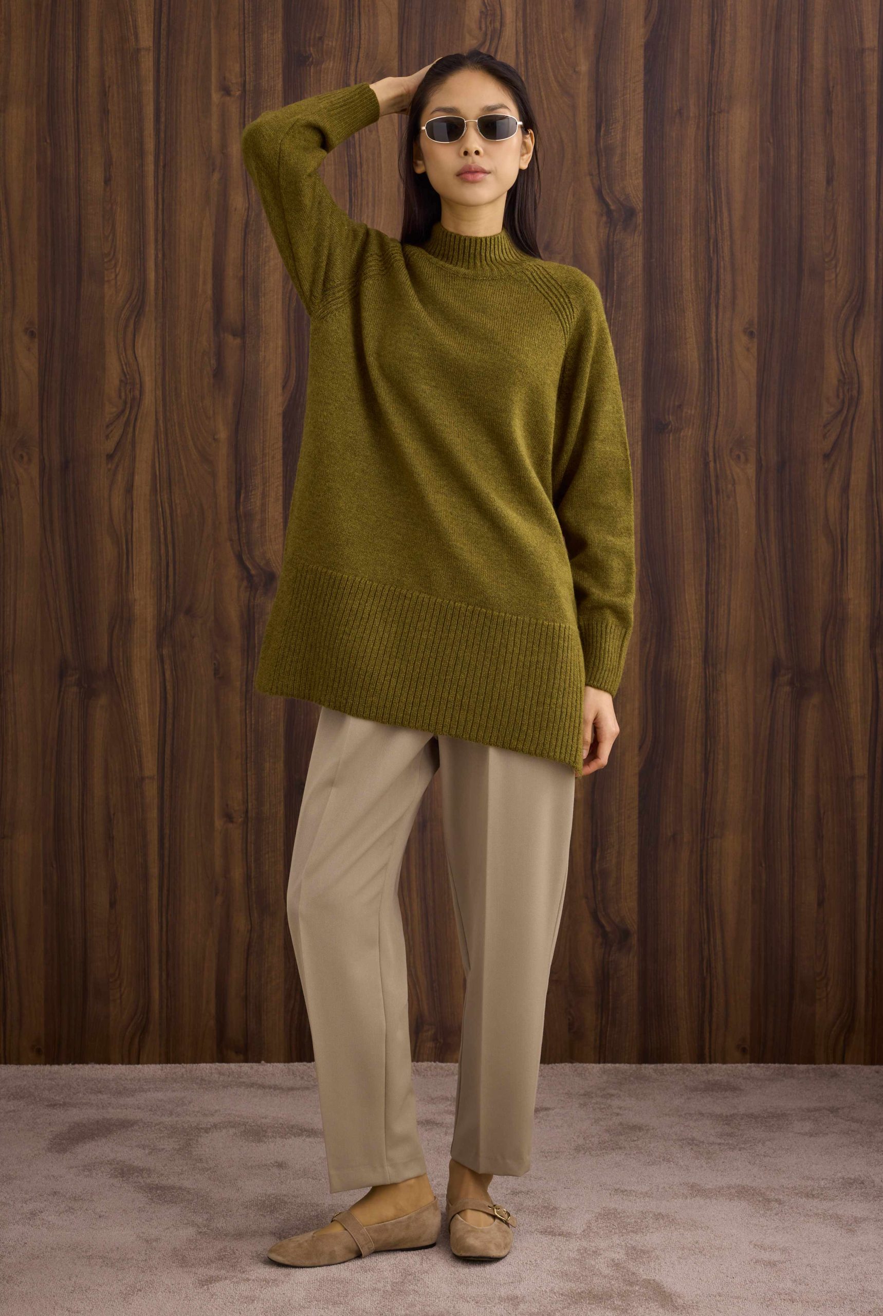 Balıkçı Yaka Basic Kazak Yosun