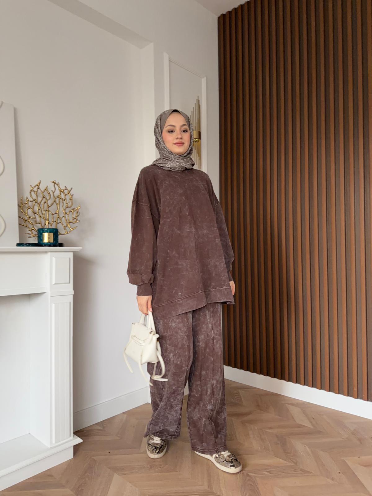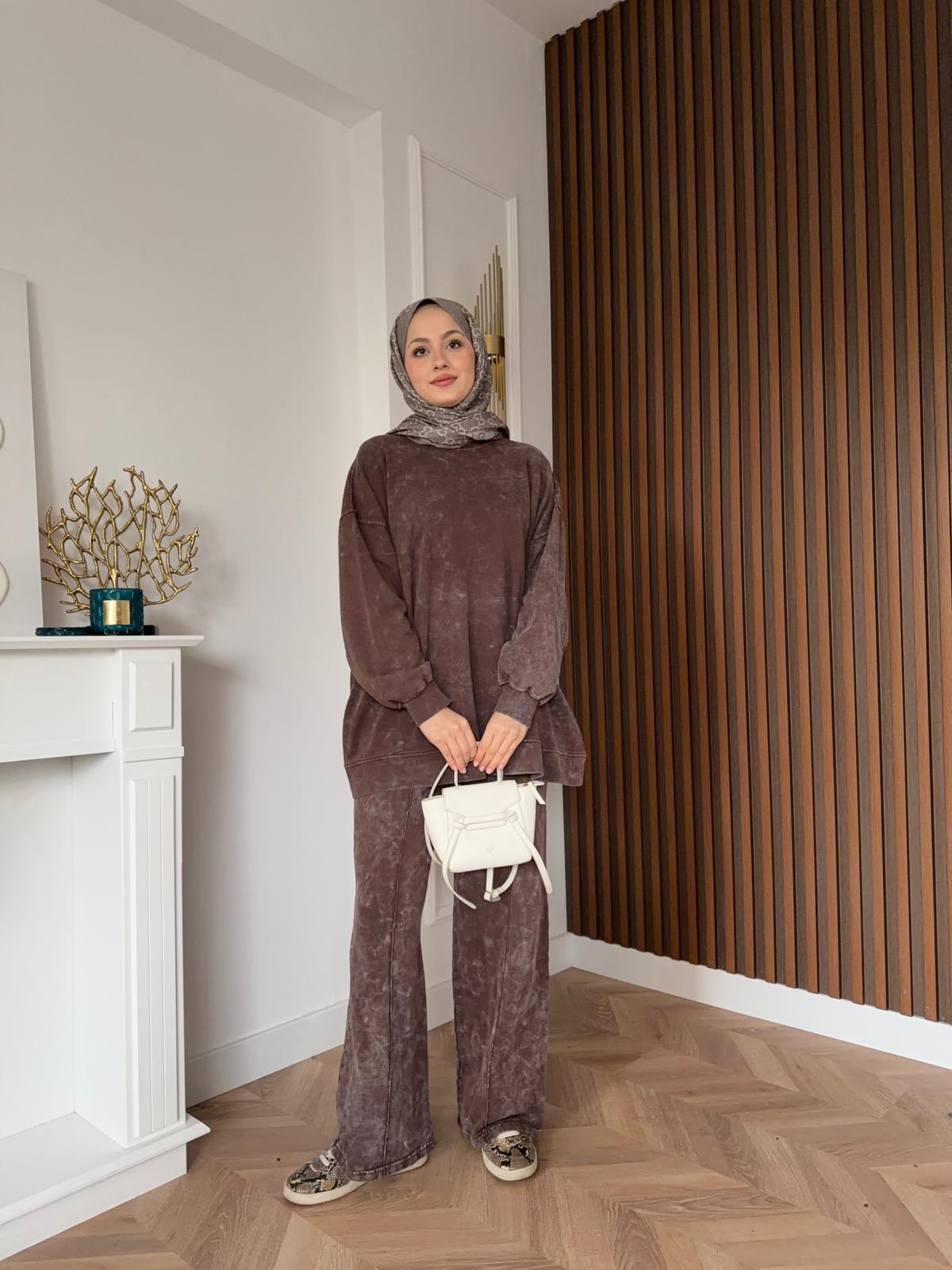 Tunik ve pantolonun uyumlu siluetiyle öne çıkan bu takım, aplike cep detaylarıyla sade tasarıma sofistike bir karakter kazandırır. Akıcı kumaşı gün boyu konfor sağlarken, modern çizgisi şehir stiline güçlü ama yalın bir dokunuş ekler.