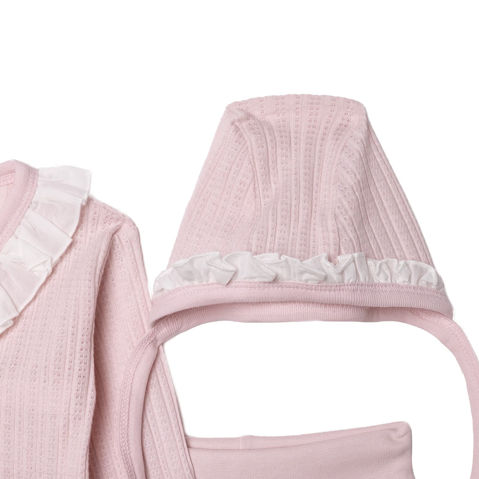 Bebetto Kız Bebek Zıbın-Şapka-Patikli Alt Çıtçıtlı Sweet Princess Fırfırlı Yaka Uzun Paça Uzun Kol %100 Pamuk