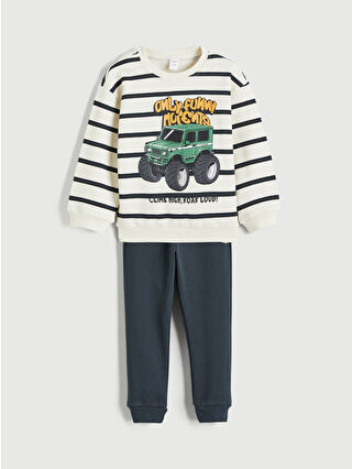 Bej Baskılı Erkek Çocuk Sweatshirt ve Pantolon Takım 2’li