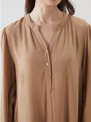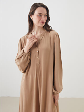 Bej Kaçık Yaka Dokulu A Kesim Elbise