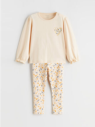 Bej Kalp Baskılı Kız Bebek Bluz ve Tayt