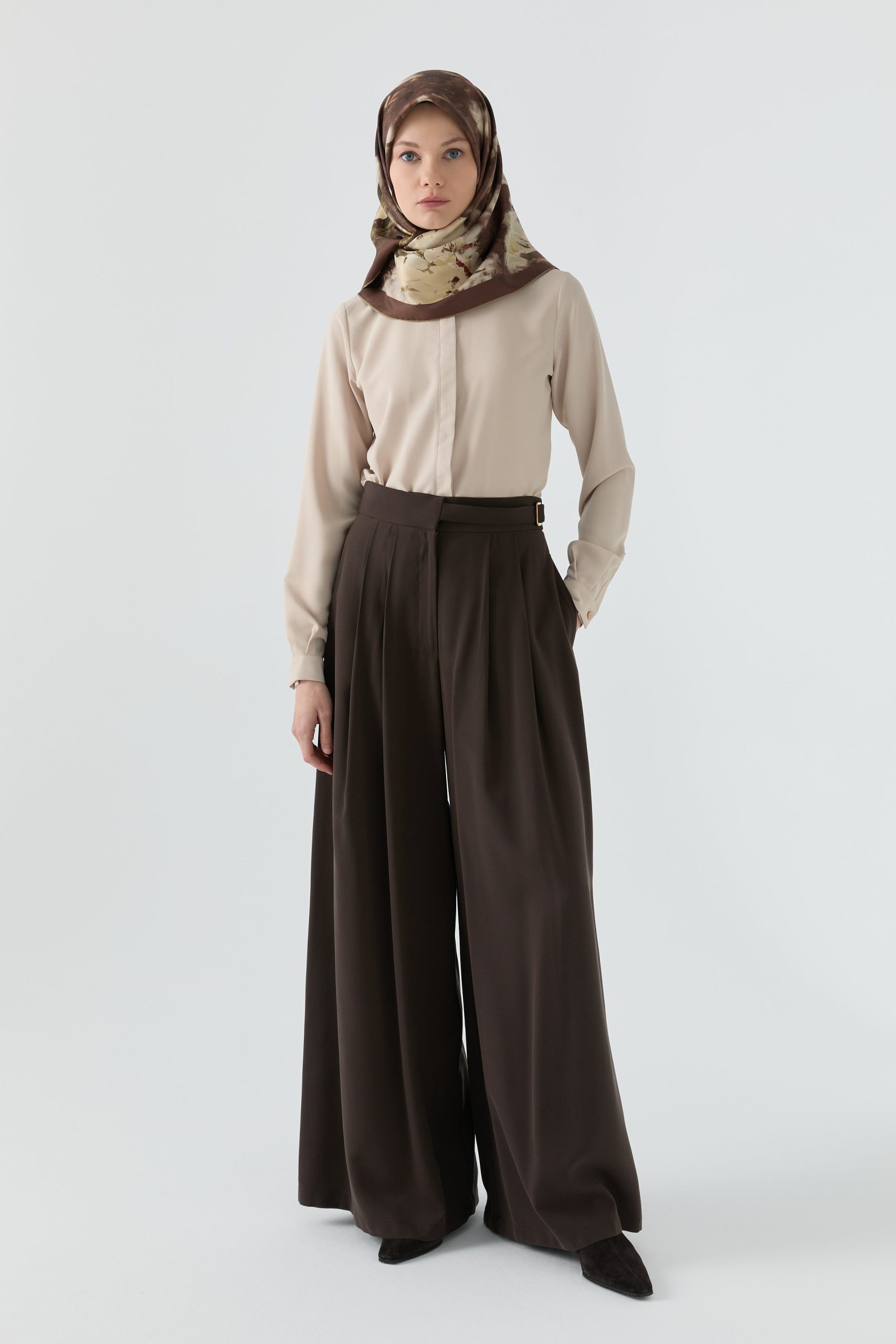 Kemerli Yandan Fermuarlı Pantolon – Kahve