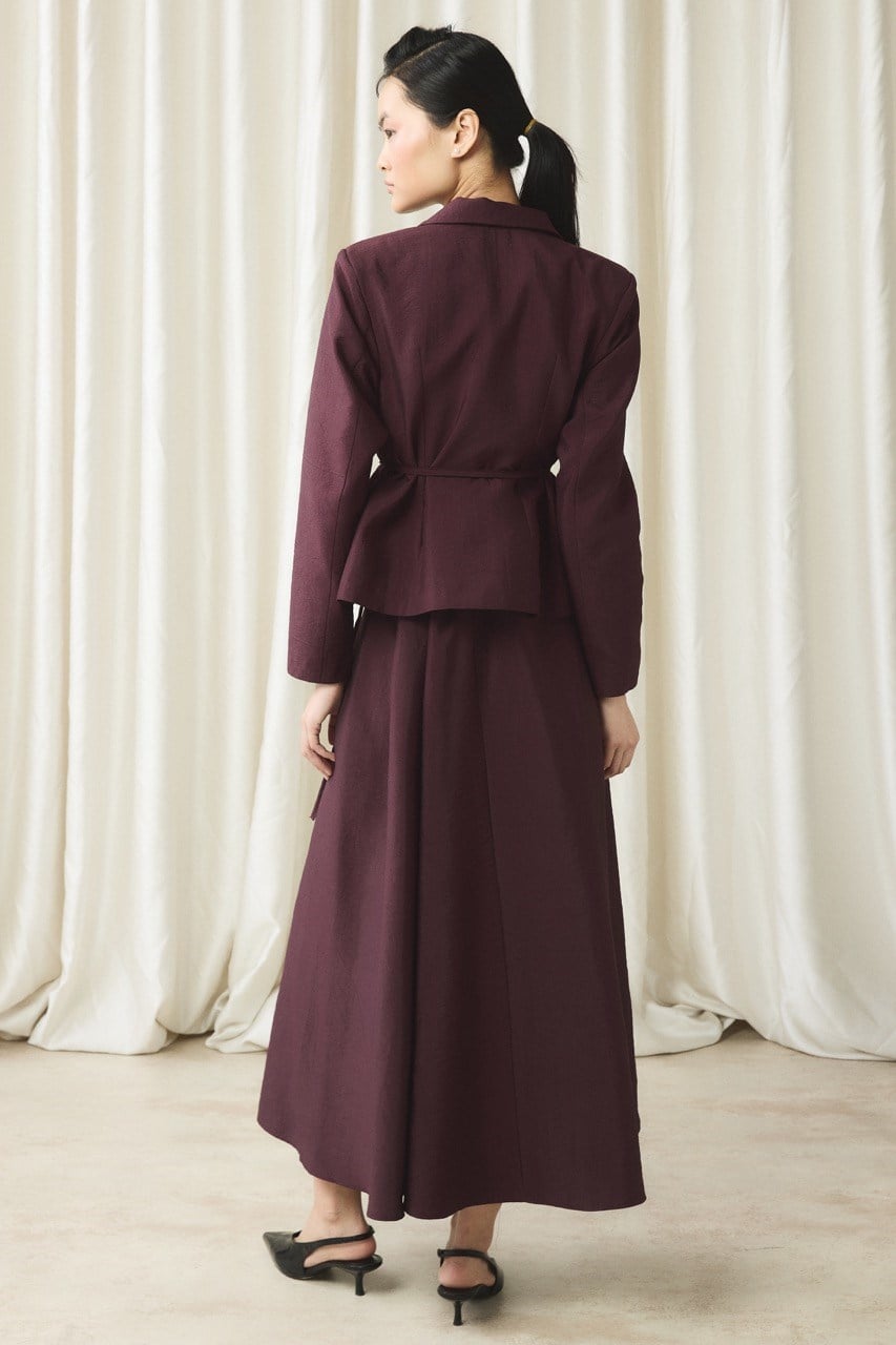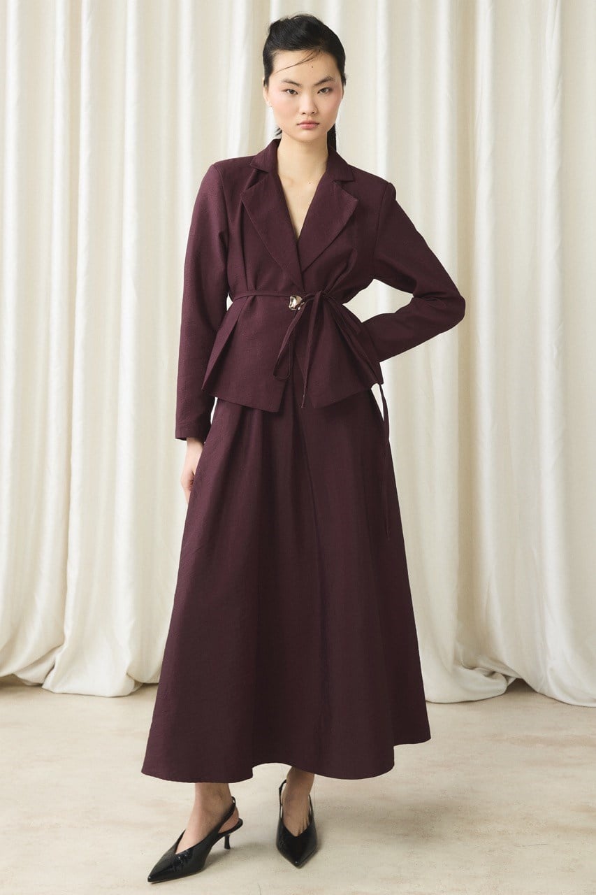 Belden Oturtmalı Ceketli Etek Takım – Bordo