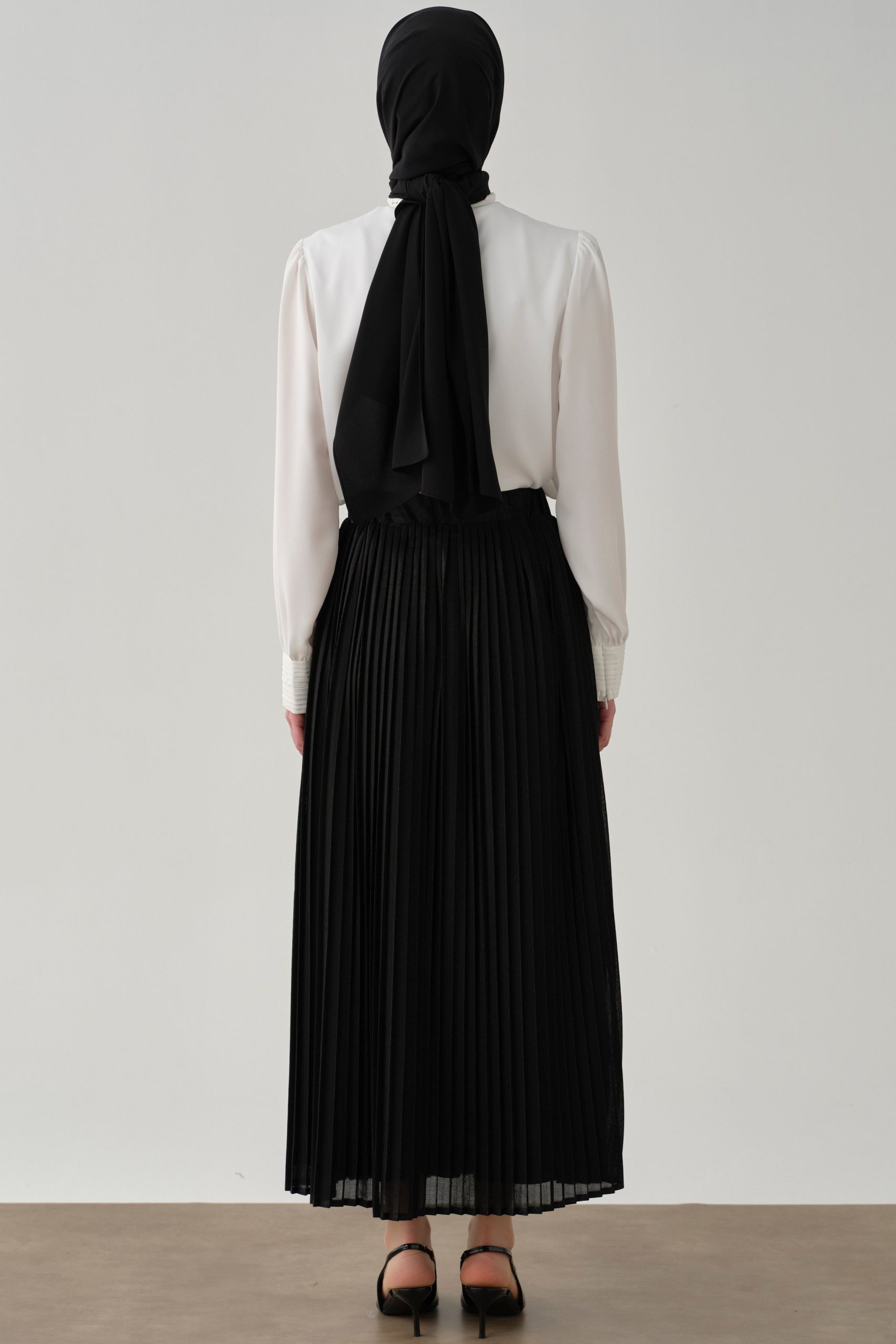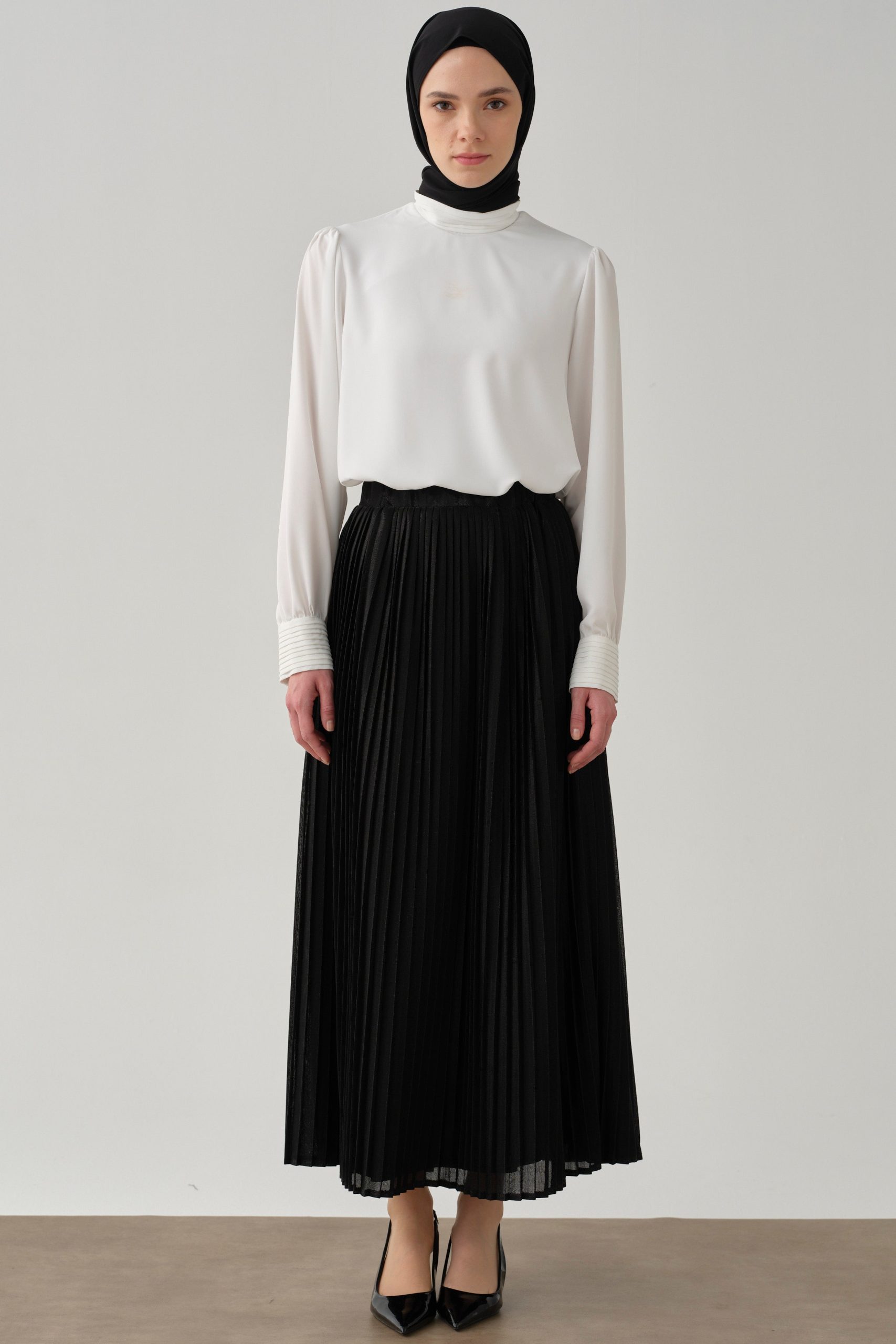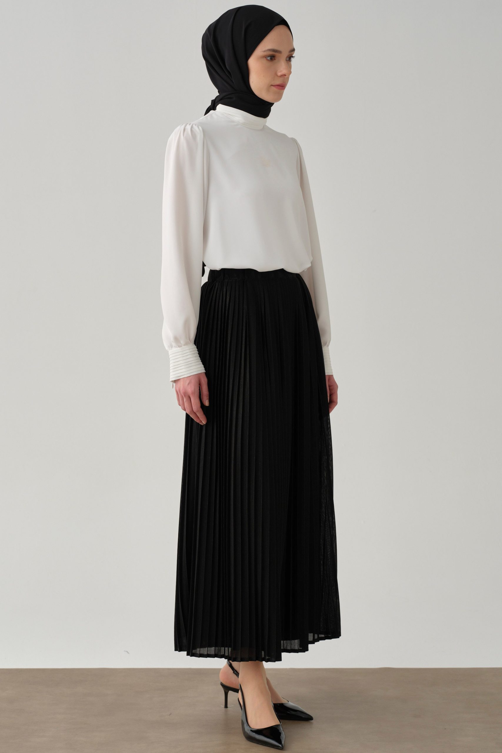 Zarif pile detayları ve konforlu tasarımı ile dikkat çeken bu siyah plise etek, klasik ve modern şıklığı bir arada sunuyor. Esnek bel yapısı ile gün boyu konfor sağlarken, akıcı pileleri ile her adımda dinamik ve şık bir görünüm kazandırır. Kumaş İçeriği: %100 Polyester. Desen: Düz. Bel Tipi: Normal Bel. Etek Tipi: Plise Etek. Cep: Cepsiz. Astar: Astarlı. Ürün Boyu: 95 cm. Kalıp Tipi: Normal Kalıp. Mankenin Giydiği Beden: 38. Manken Ölçüleri: Boy: 174 cm, Göğüs: 83 cm, Bel: 57 cm, Basen: 88 cm.
