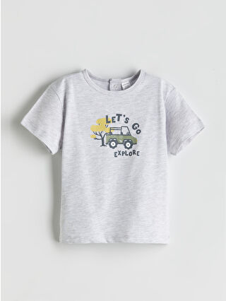 Beyaz Baskılı Pamuklu Erkek Bebek Tişört 2’li