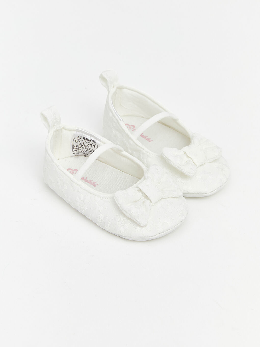 Beyaz Desenli Kız Bebek Yürüme Öncesi Ayakkabı
