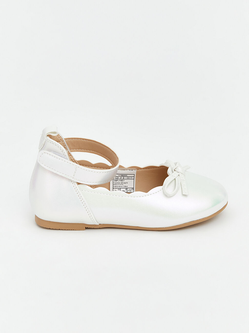 Beyaz Fiyonk Detaylı Kız Çocuk Babet