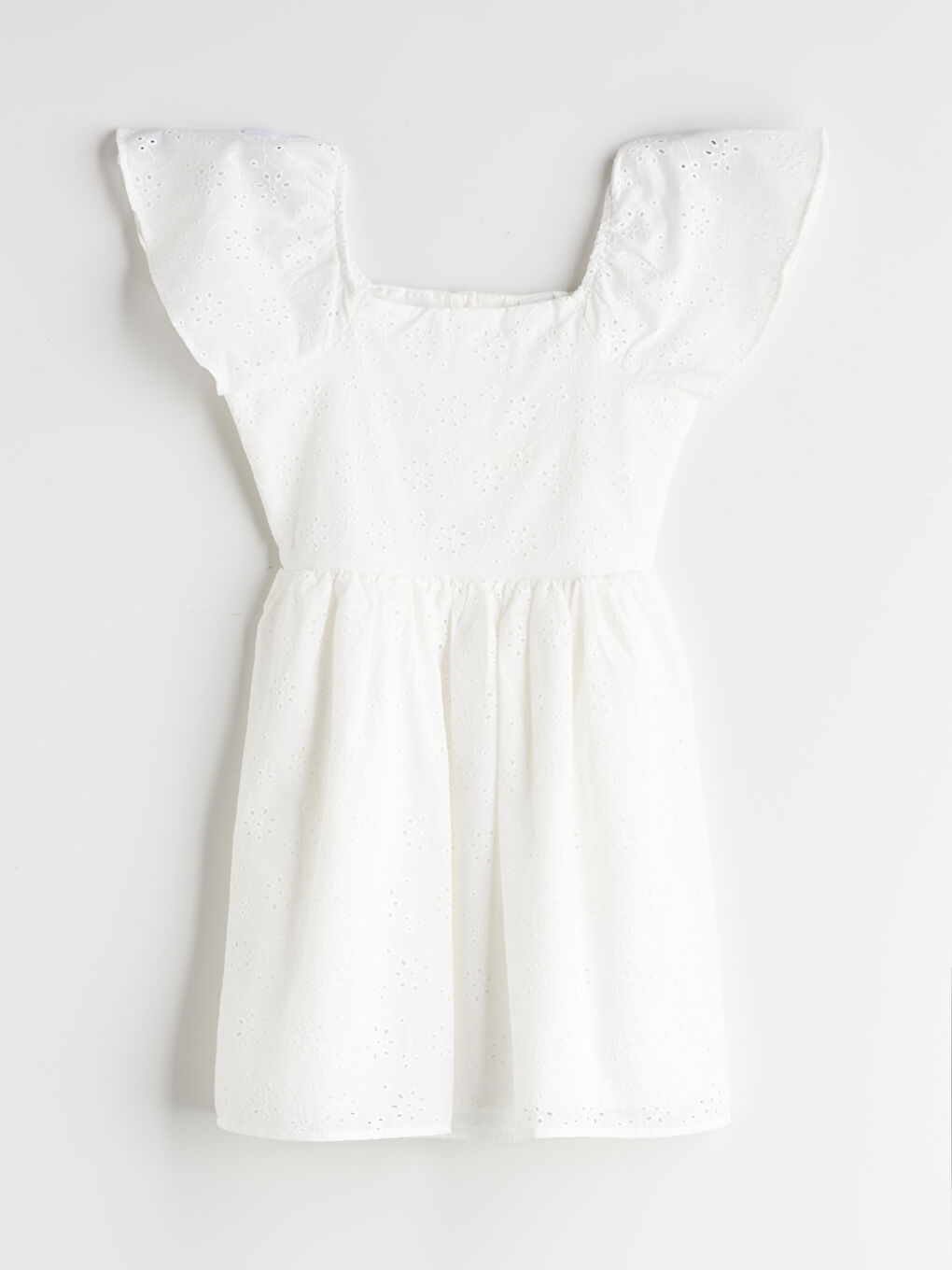 Beyaz Kare Yaka Kız Çocuk Elbise