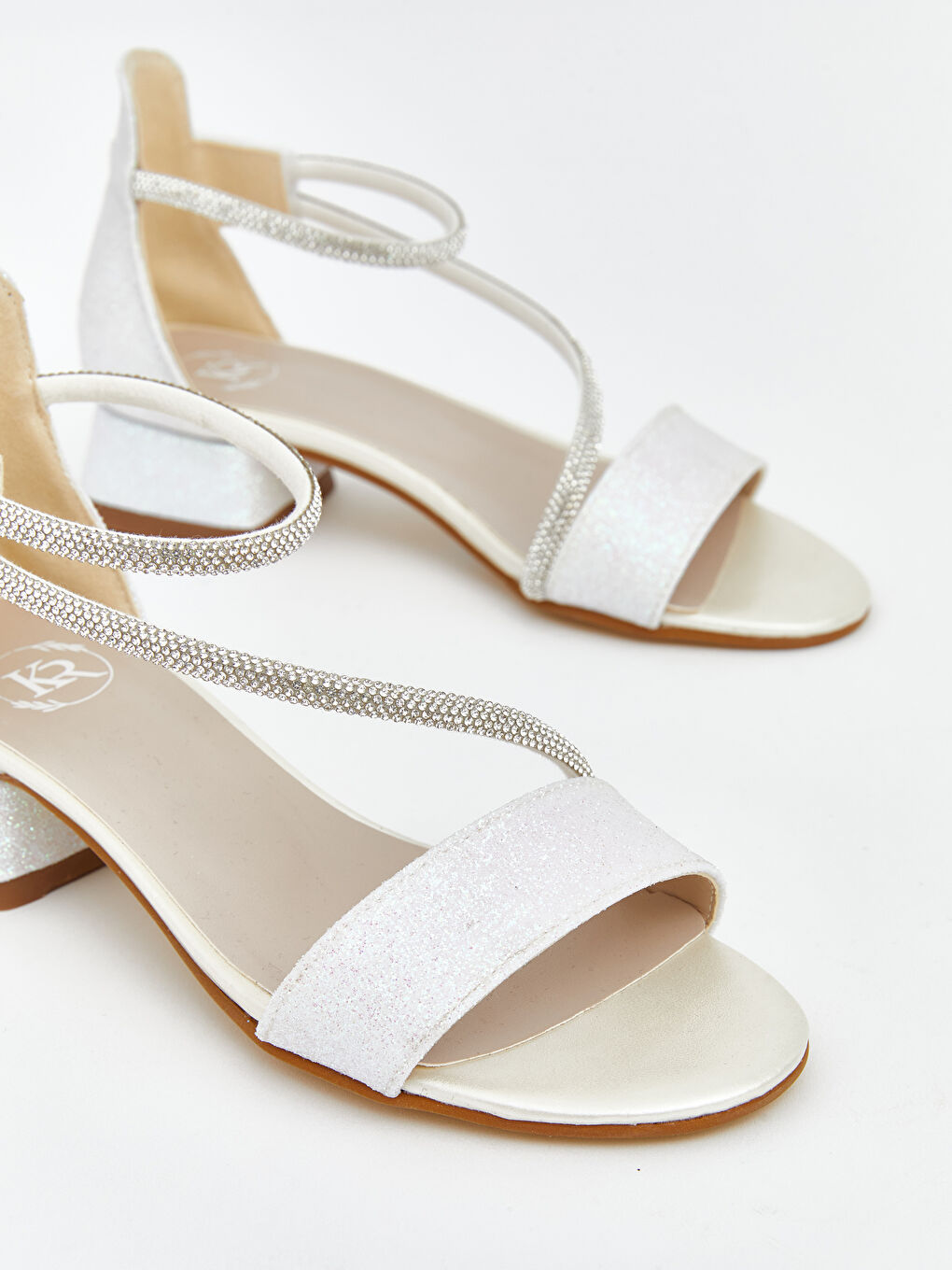 Beyaz Taşlı Kız Çocuk Topuklu Ayakkabı