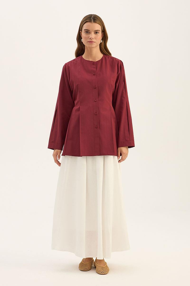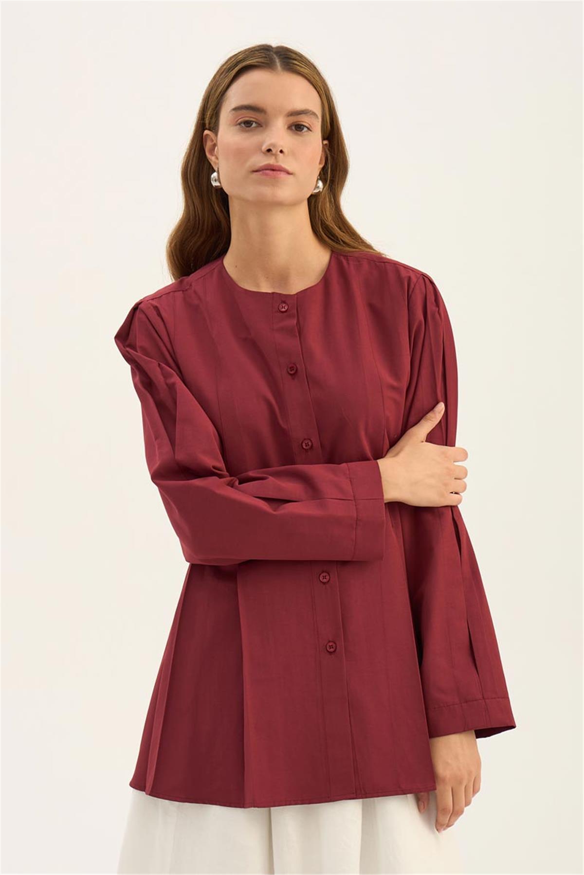 Bisiklet Yaka Gömlek Açık Bordo