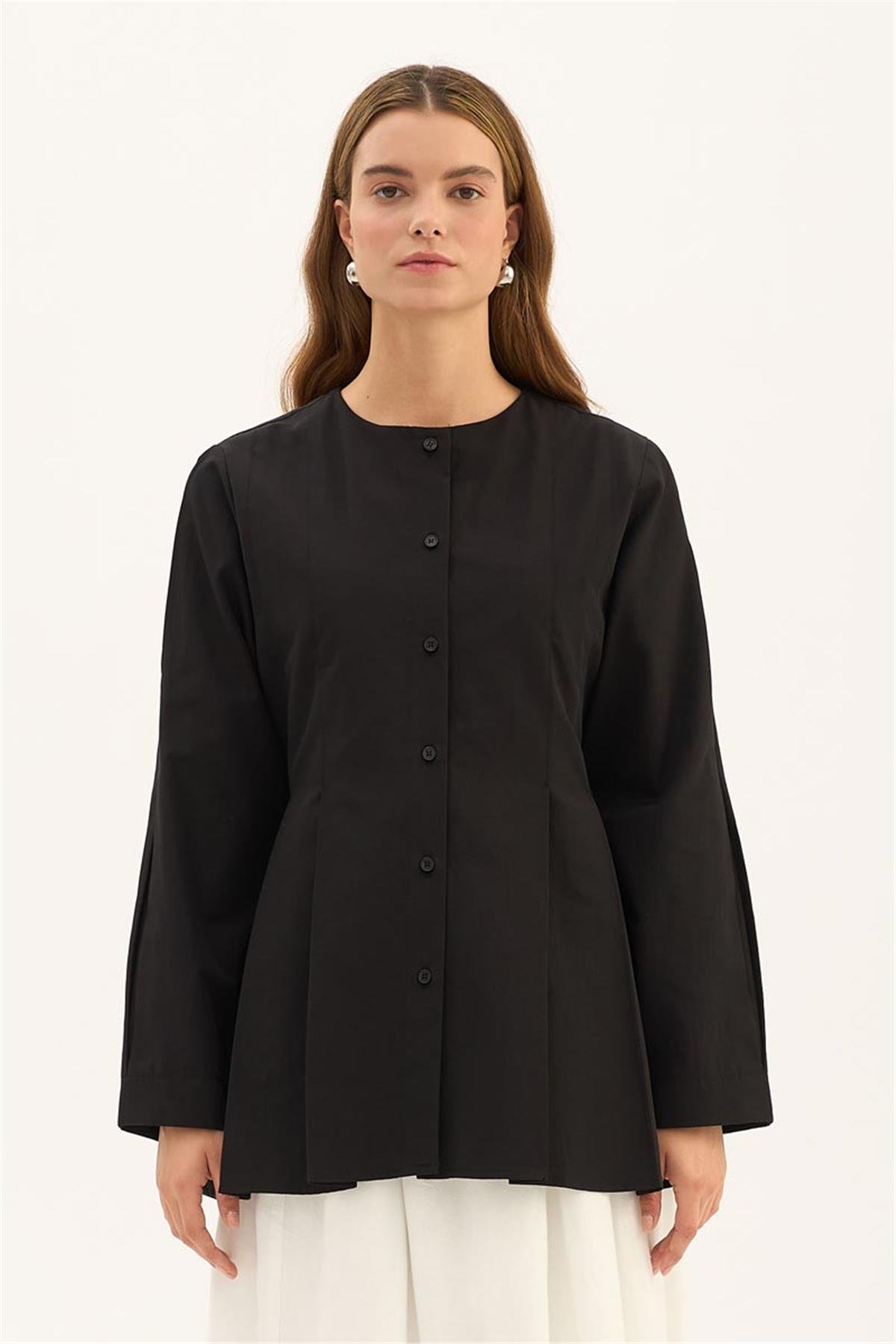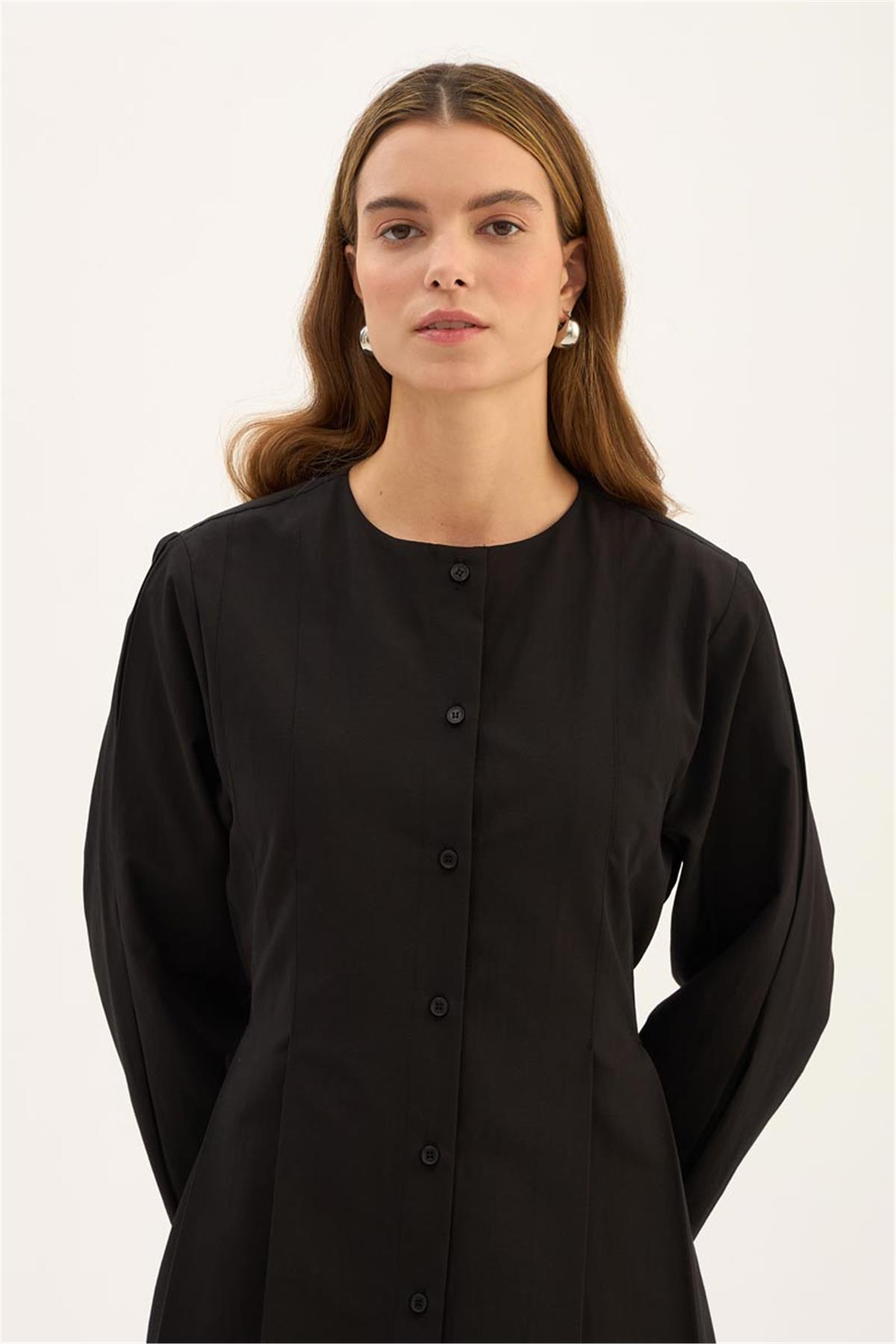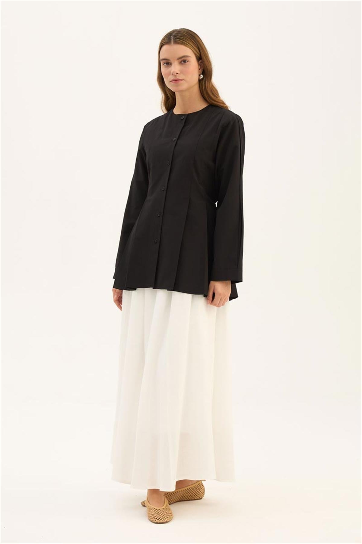 Bisiklet Yaka Gömlek Siyah, yaz sezonuna uygun hafif ve şık tasarımıyla dikkat çeker. %52 pamuk ve %48 polyester karışımı kumaşı sayesinde hem nefes alabilen hem de formunu koruyan bir yapıdadır. Bisiklet yaka detayı, düğmeli ön tasarım ve uzun kollu formu ile sade ve modern bir görünüm sunar. Günlük kombinlerden ofis şıklığına kadar geniş kullanım imkânı sağlar. Siyah rengi, nötr tonlarla kolayca uyum sağlayarak çok yönlü stil alternatifleri sunar.