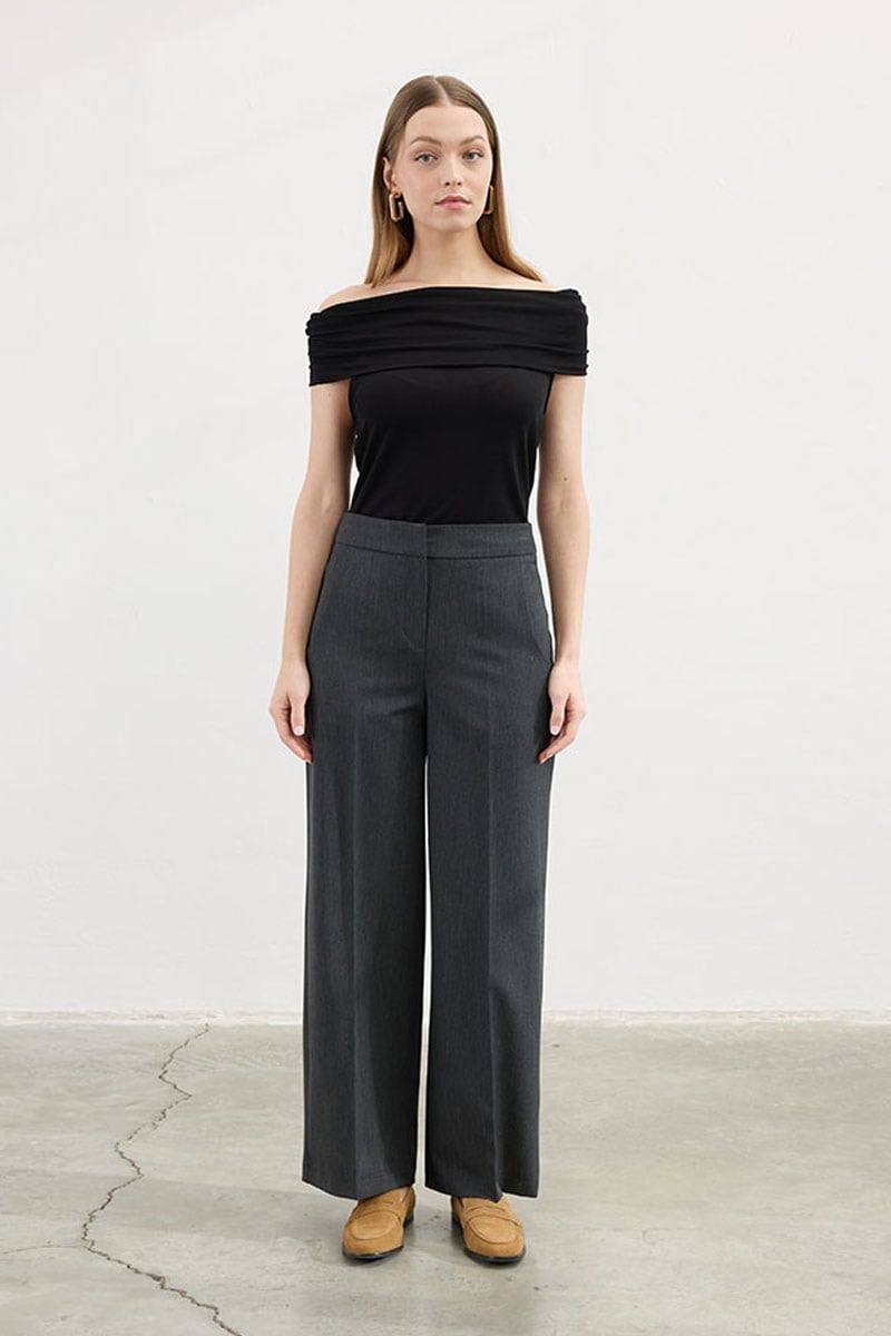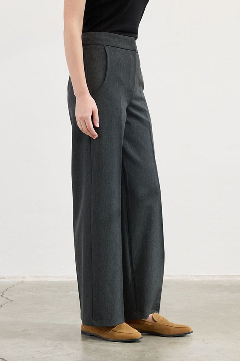 Kesik Detaylı Bol Paça Pantolon – İndigo