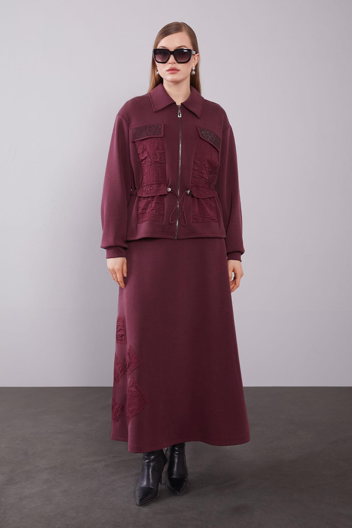 Tunik ve pantolonun uyumlu siluetiyle öne çıkan bu takım, aplike cep detaylarıyla sade tasarıma sofistike bir karakter kazandırır. Akıcı kumaşı gün boyu konfor sağlarken, modern çizgisi şehir stiline güçlü ama yalın bir dokunuş ekler.