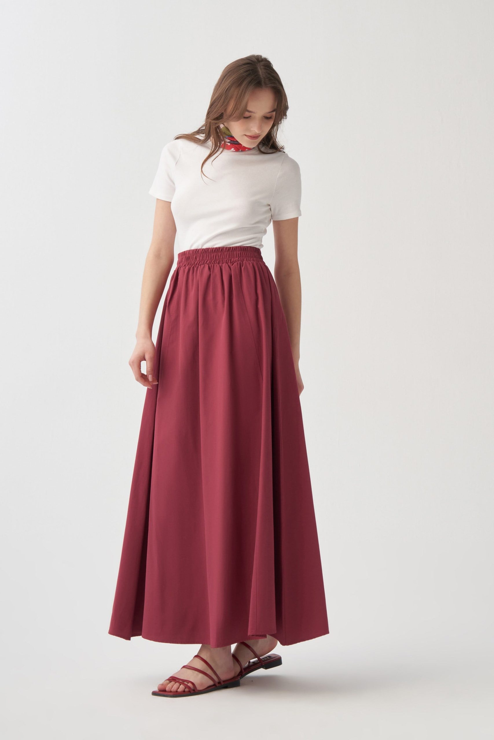 Şıklığı detaylarda arayanlar için tasarlanan Bordo Poplin Etek ile zarif bir görünüm yakalayın. Günlük ve özel kombinler için ideal tasarım.