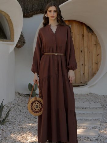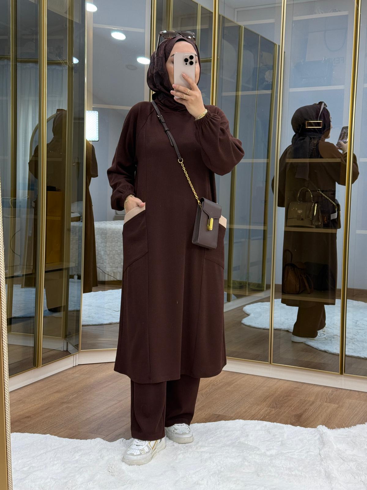 Burgu Kumaş Garnili Takım Kahverengi