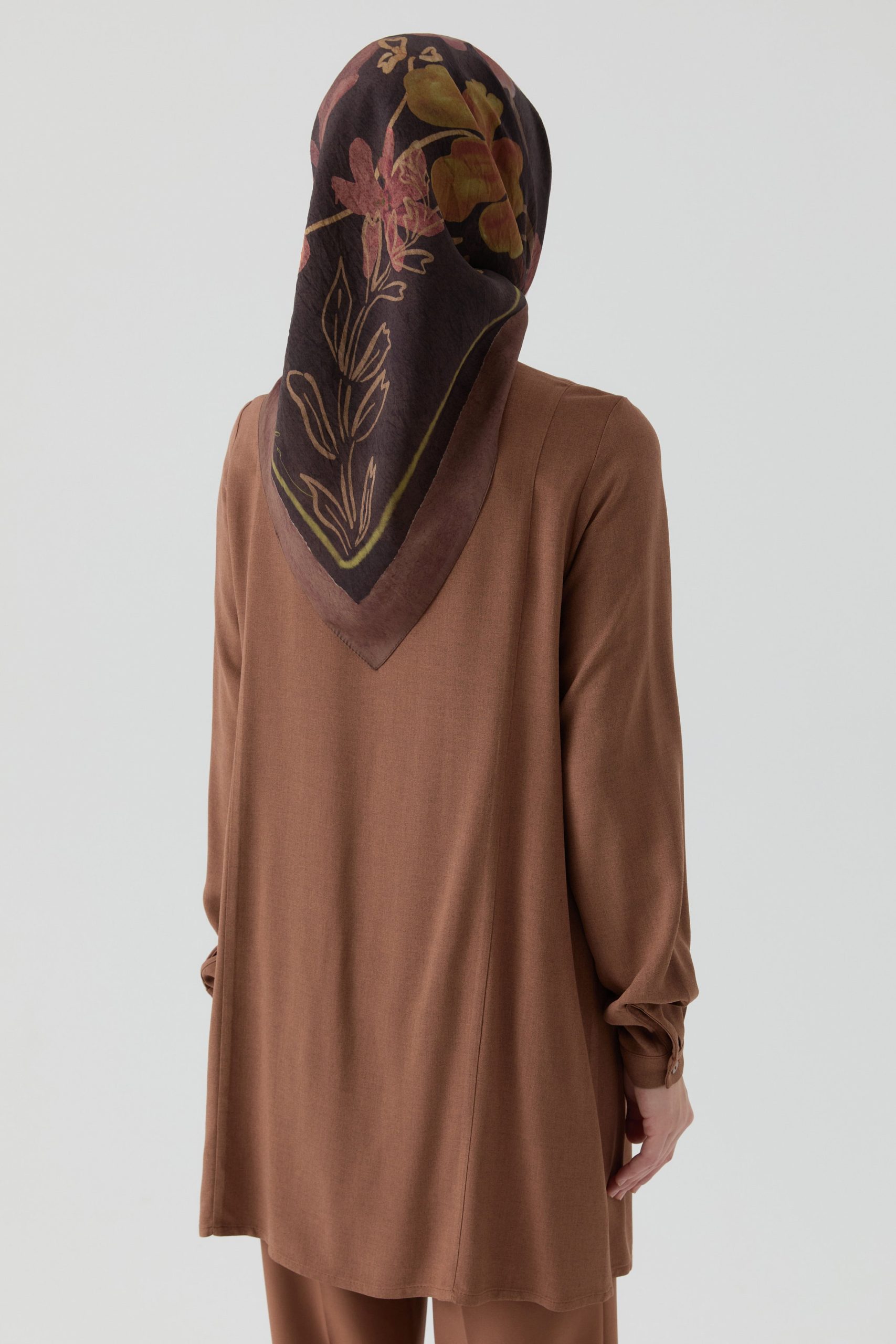 Doğal ve ferah bir görünüm sunan pudra rengi uzun tunik, yaz sezonunun hafif ve şık parçalarından biri. %88 Tencel ve %12 Pes karışımından üretilen kumaşı, yumuşak dokusu ve nefes alabilir yapısıyla gün boyu konfor sağlar. Minimal tasarımı, gizli patlı düğme detayı ve eteğinde yer alan zarif kavis kesimi ile modern bir duruş sergiler. Geniş manşetli uzun kolları ve rahat kesimi sayesinde hareket özgürlüğü sunan tunik, hem günlük kombinlerde hem de ofis şıklığında rahatlıkla tercih edilebilir. Nötr ve pastel tonlardaki pantolonlarla mükemmel uyum sağlar, aynı zamanda topuklu sandaletler veya düz ayakkabılarla farklı stillere uyarlanabilir. Zarif pudra tonu ile gardırobunuza taze ve huzurlu bir dokunuş katar.