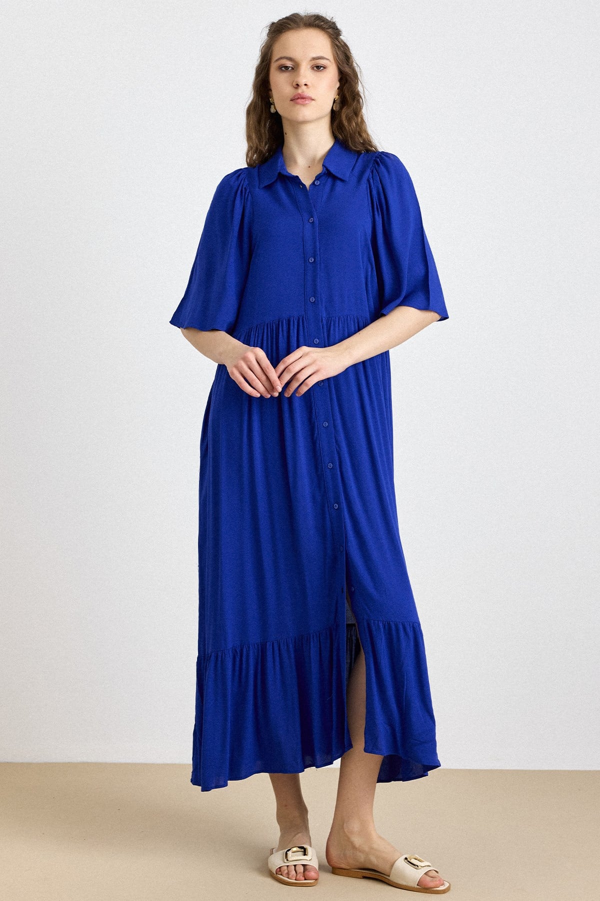 Etiketler: büzgülü elbise, gömlek yaka, rahat kesim