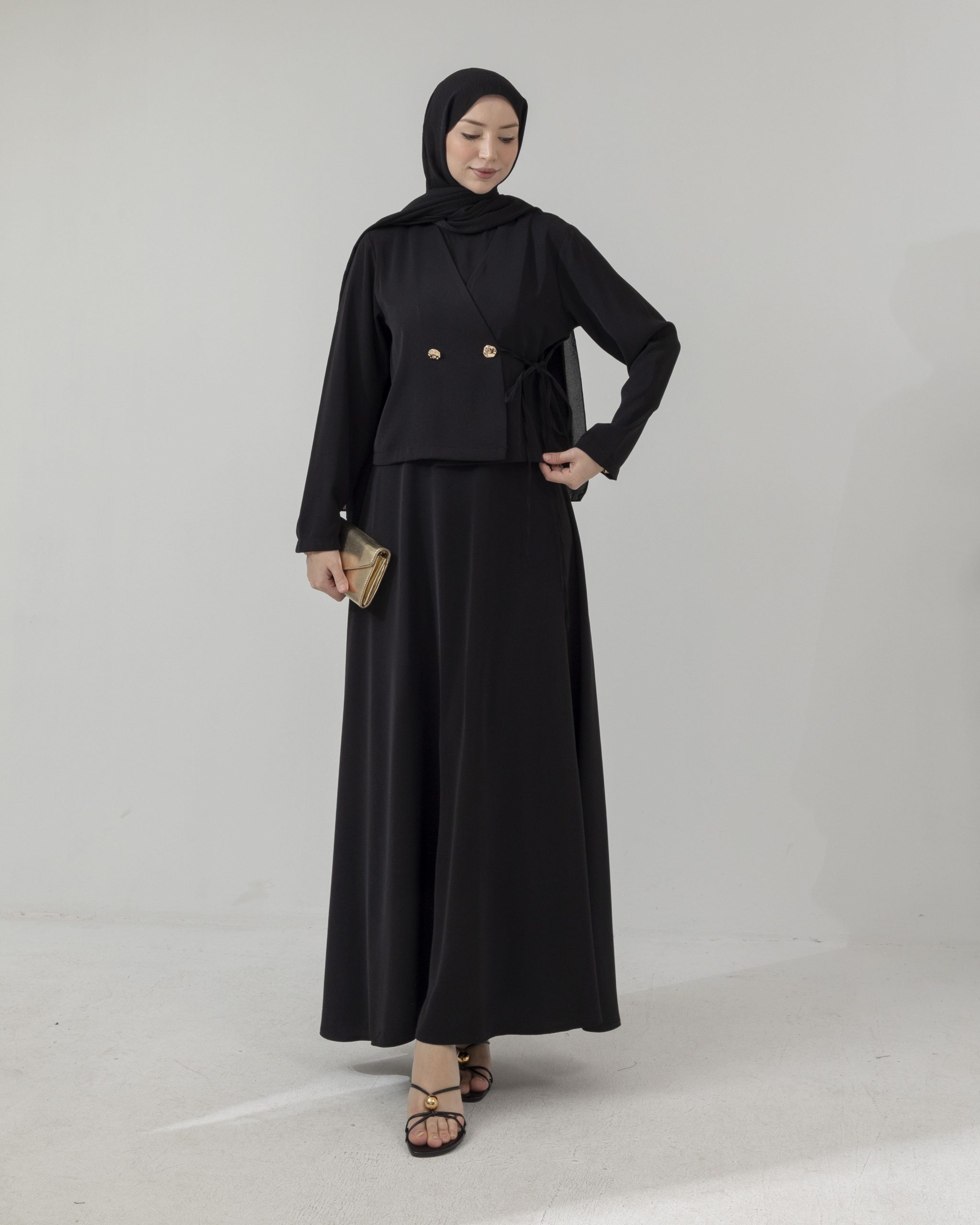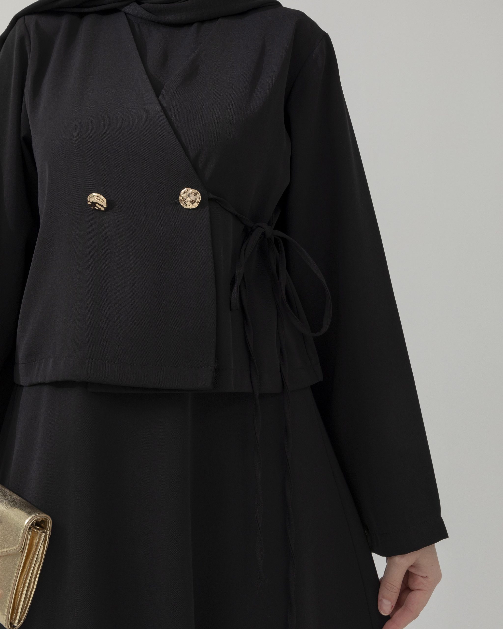 Tunik ve pantolonun uyumlu siluetiyle öne çıkan bu takım, aplike cep detaylarıyla sade tasarıma sofistike bir karakter kazandırır. Akıcı kumaşı gün boyu konfor sağlarken, modern çizgisi şehir stiline güçlü ama yalın bir dokunuş ekler.