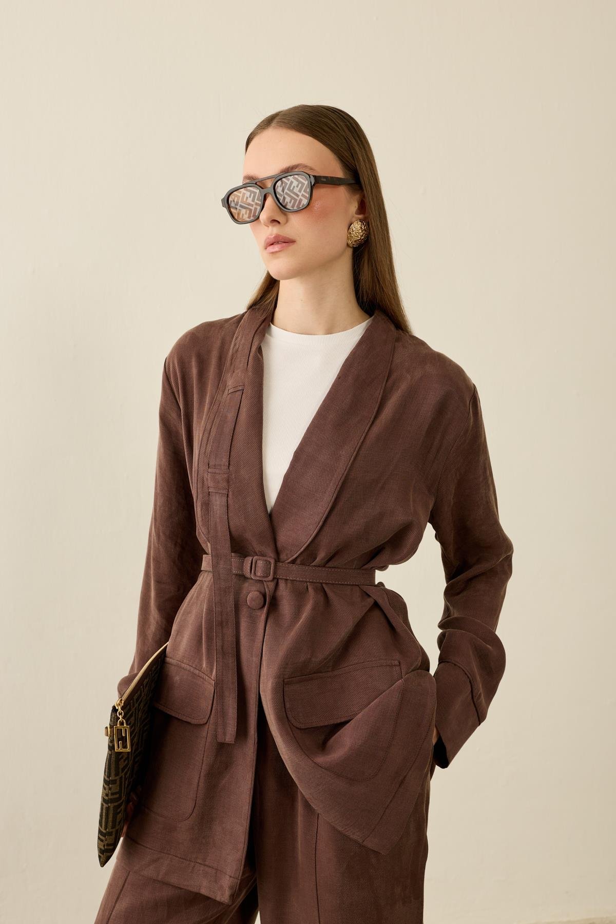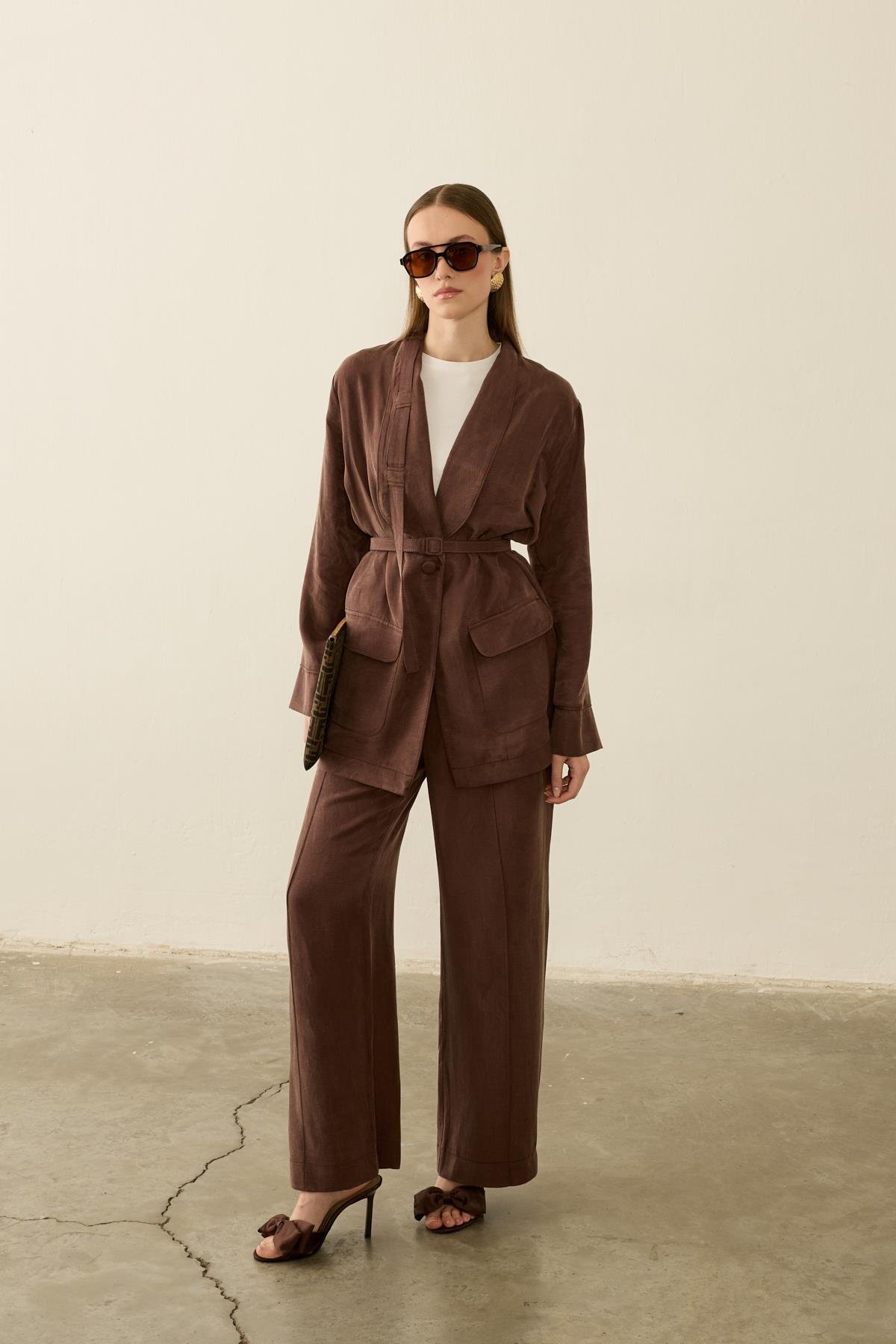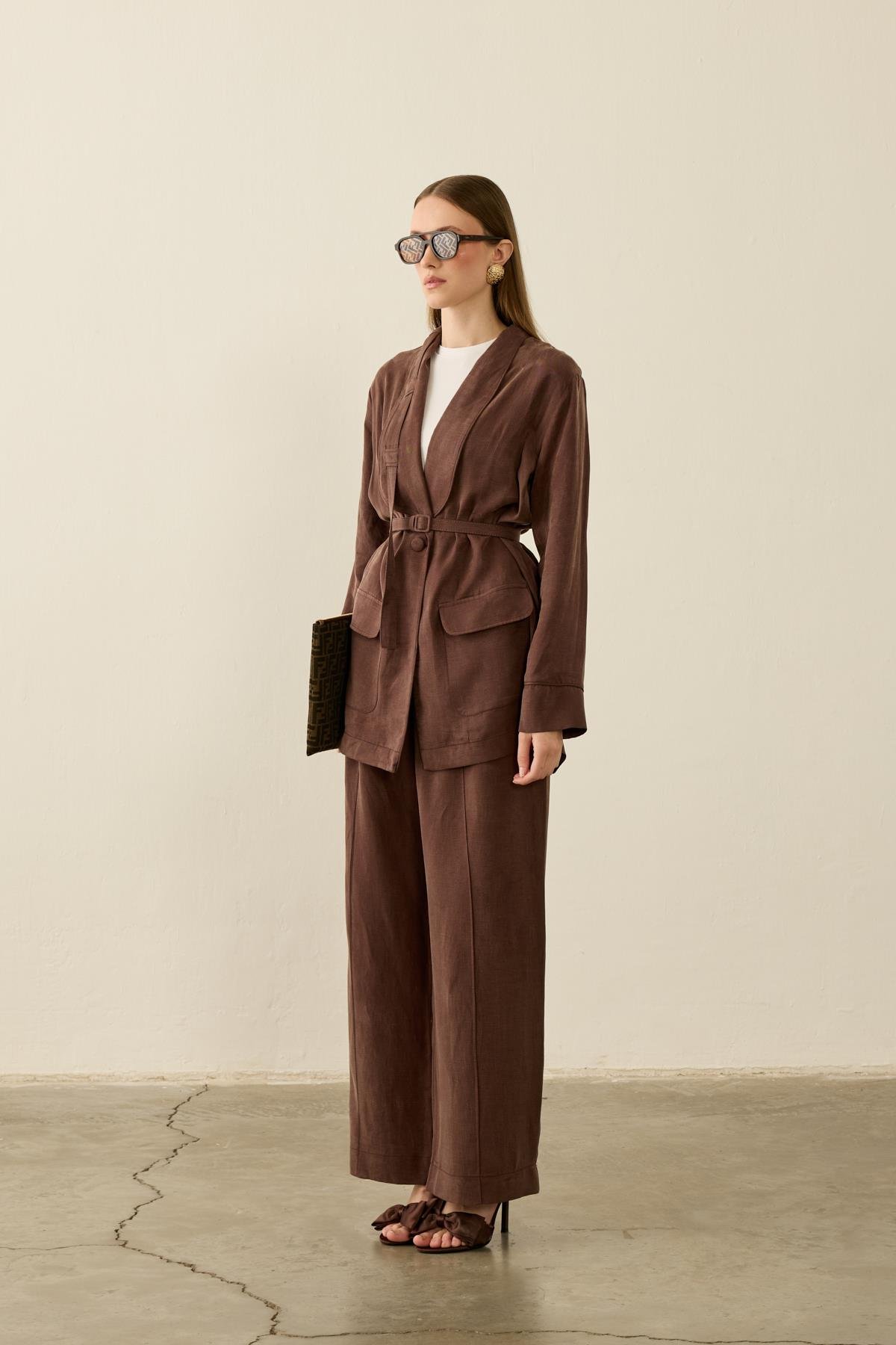 Celine Ceketli Fleto Detaylı Pantolonlu Takım KAHVERENGİ