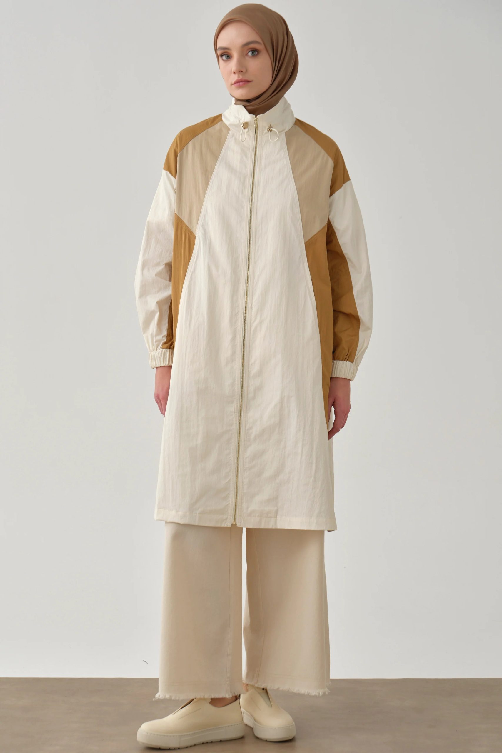 Çentik Detaylı Yağmurluk – Ekru-Deve