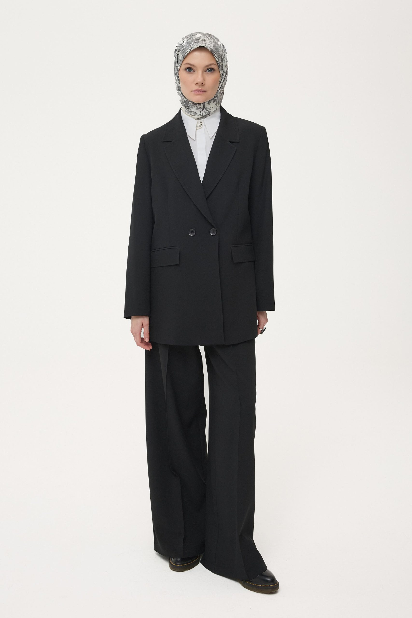 Cep Detaylı Ceket Pantolon Takım – Siyah