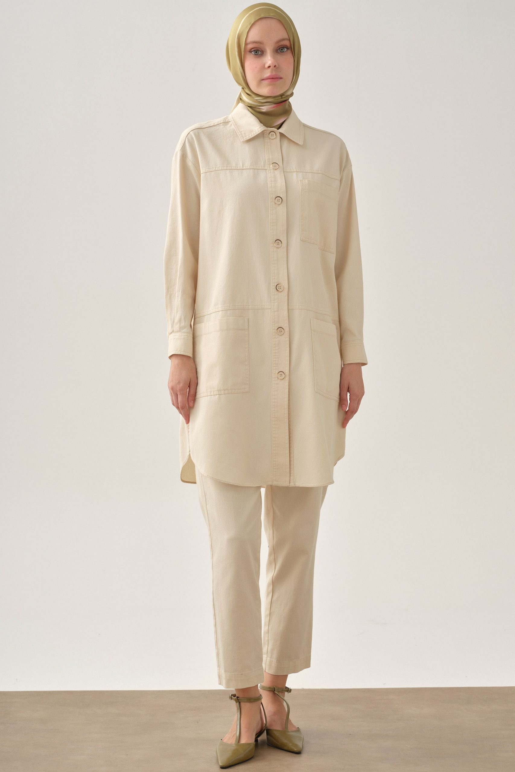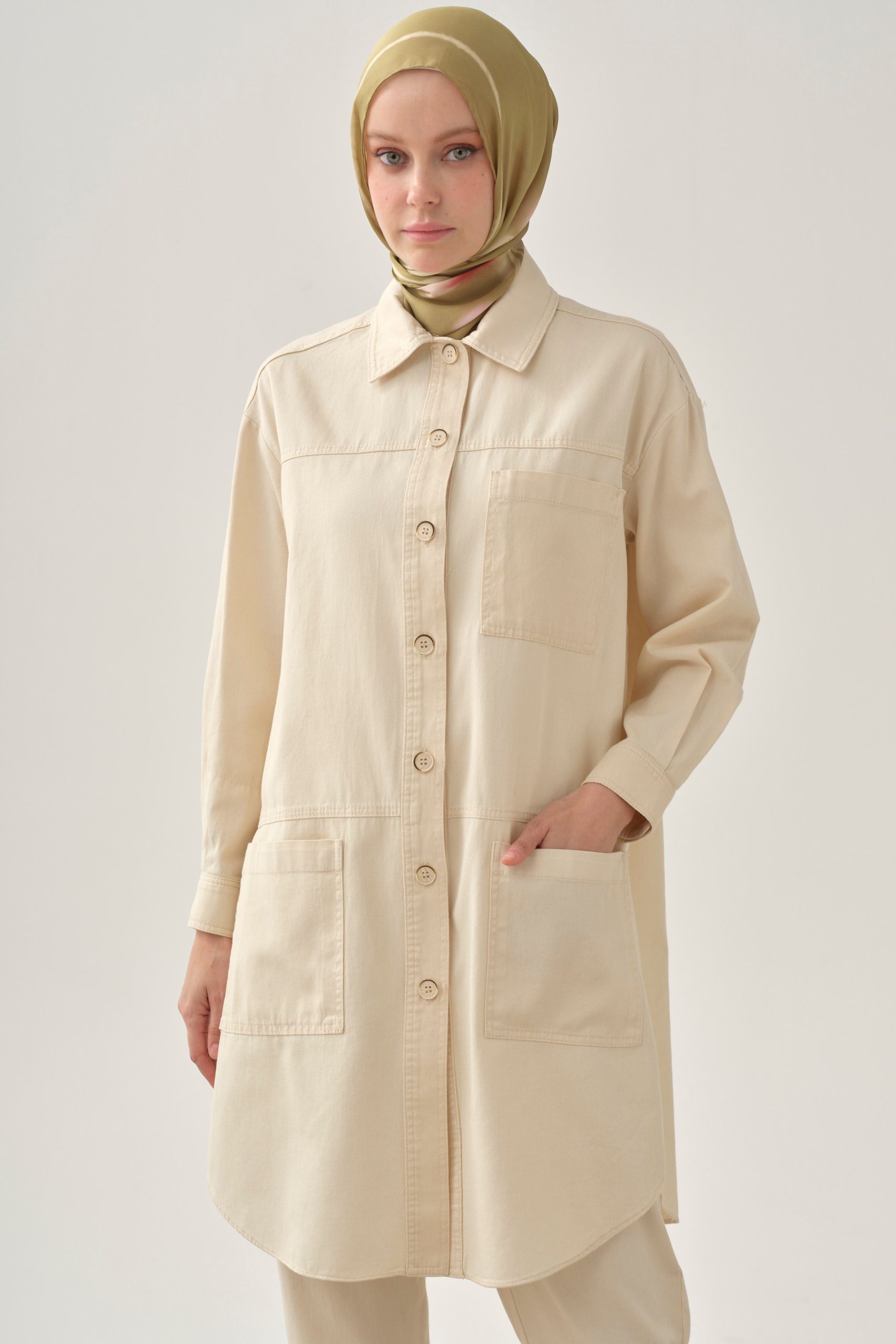 Salaş kalıbı sayesinde hareket özgürlüğü sunar. Sade detaylarıyla hem spor hem klasik kombinlerde uyum yakalar. Tesettür tunik modasının sade ama zarif temsilcisi.