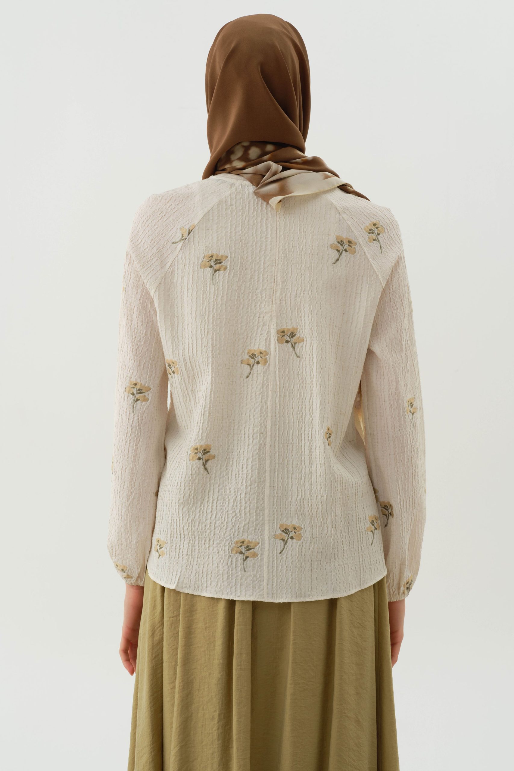 Çiçek Desenli Bluz – Haki