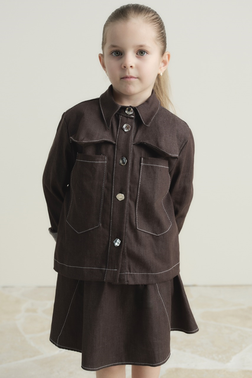 Çift Cep Kapaklı Allerli Kot Takım – Kahve