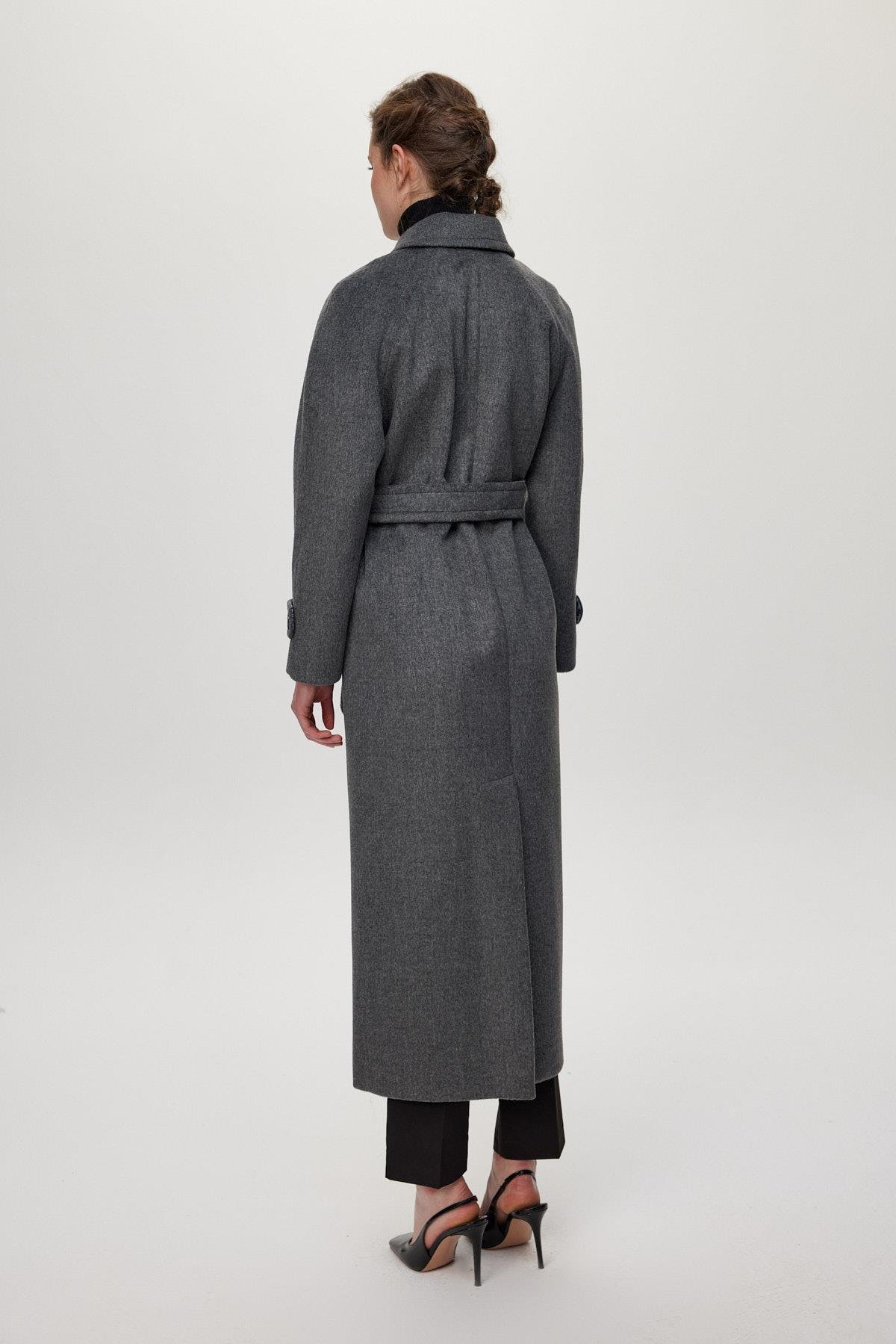 Çift Cepli Kuşaklı Füme Kaşe Kaban 13659