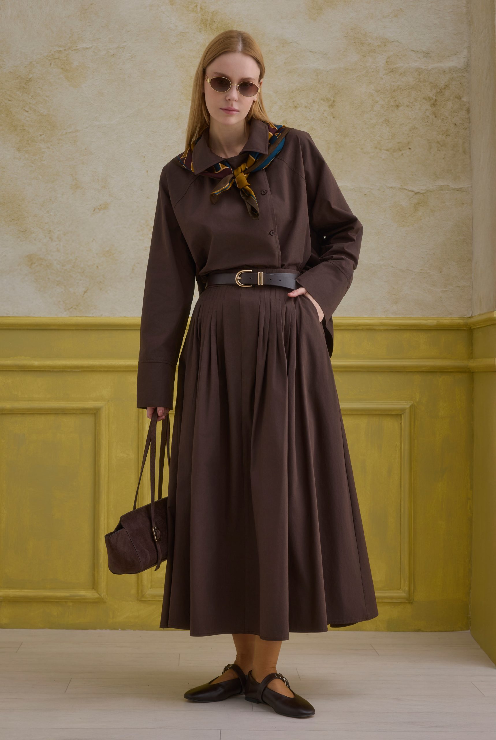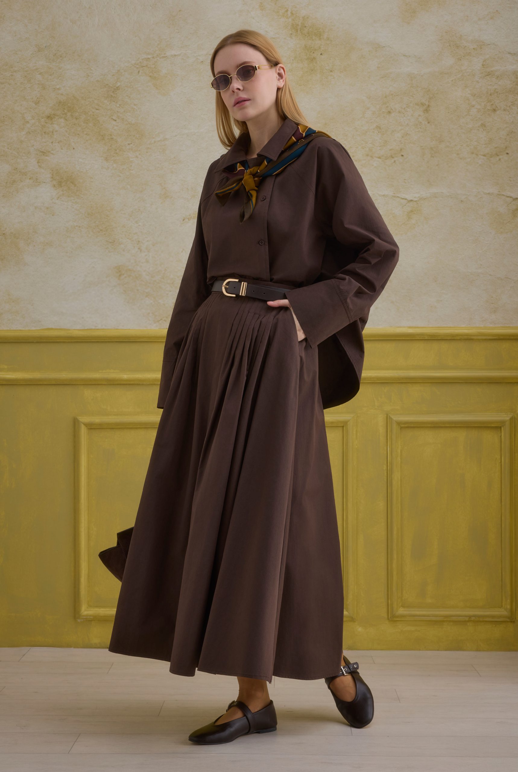 %100 pamuk kumaştan üretilen bu gömlek, tamamen doğal lifleri sayesinde nefes alabilen ve cilt dostu bir konfor sunar. Kağıt dokusu görünümü bilinçli olarak tercih edilmiş olup, kumaşın doğal buruşuk yapısı tasarıma karakter ve benzersiz bir çekicilik katar; bu buruşukluklar rahatsız edici değildir.