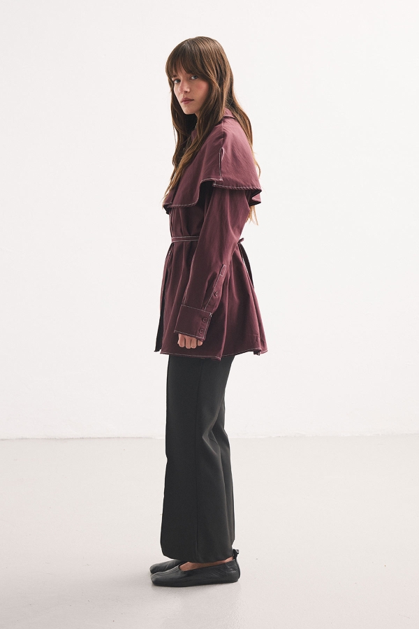 ÇIKARILABİLİR PELERİN YAKA BURGANYA GÖMLEK ÖZELLİKLERİ Gömlek yakalı, düğmeli, tak- çıkar pelerinli, dikiş detaylı, kendi kumaşından biye kemerli, yandan kemer köprülü, normal kalıp çıkarılabilir pelerin yaka gömlek. İÇERİĞİ VE YIKANMASI %100 Pamuk Maksimum 30 derecede hassas yıkama yapınız. Sentetik ve narin programları ile yıkama yapınız. El ile ölçümlerde 2-3 cm farklılık gösterebilir. Manken Bedeni: S-M Manken Ölçüsü: Boy: 1.74 cm, Göğüs: 82 cm, Bel: 61 cm, Basen: 92 cm