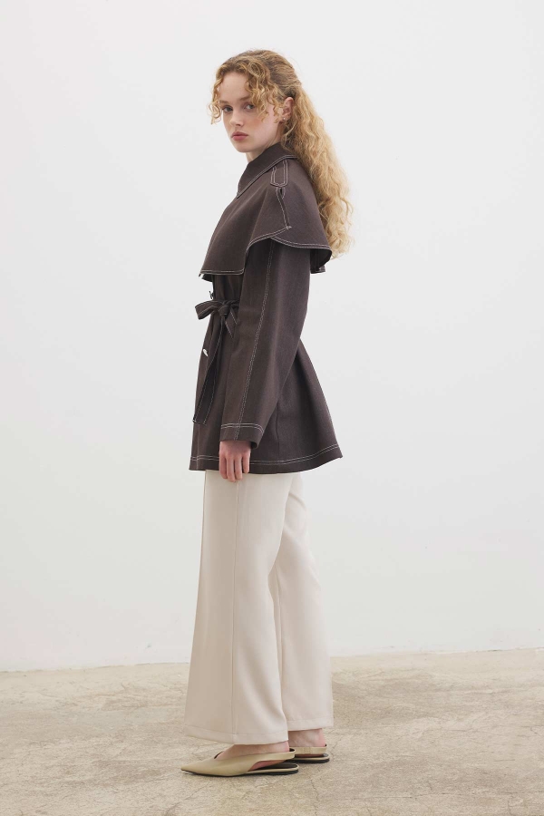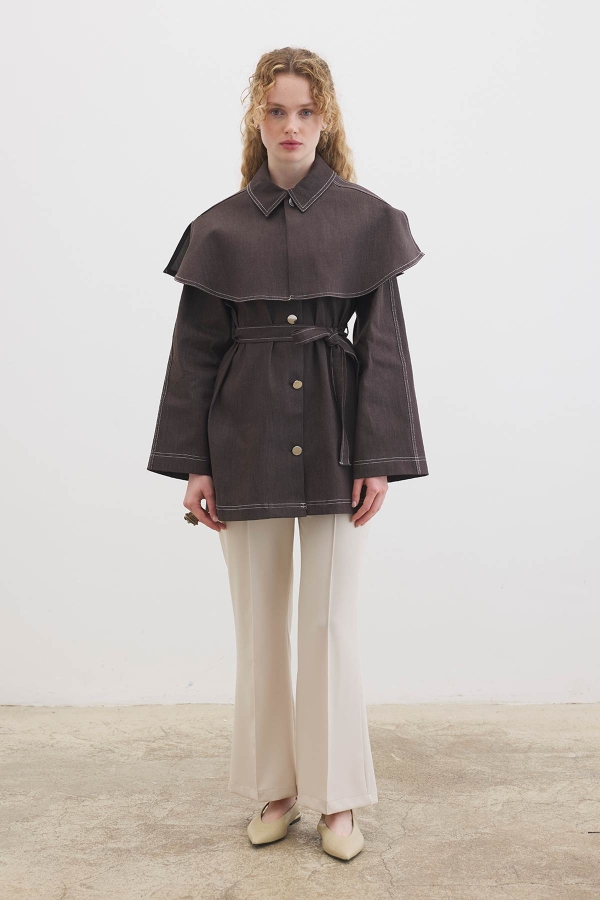 Çıkarılabilir Pelerin Yaka Kahverengi Gömlek