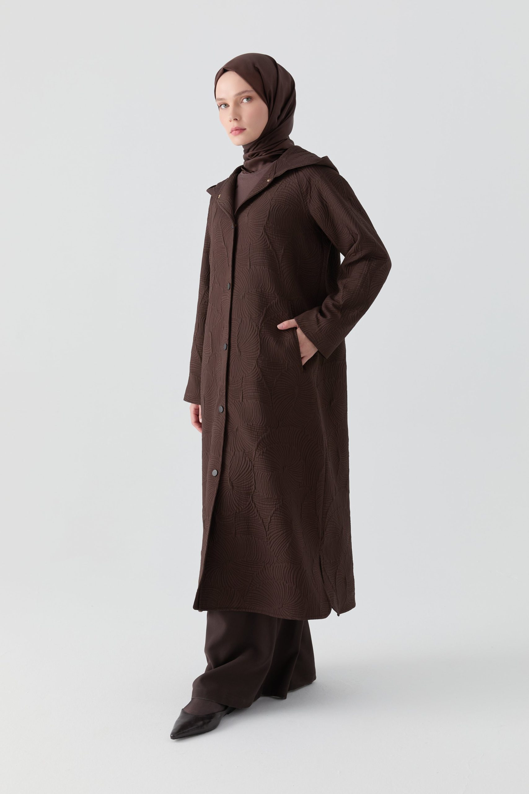 Çıtçıt Kapamalı Yırtmaçlı Kapitone Kap – Kahve
