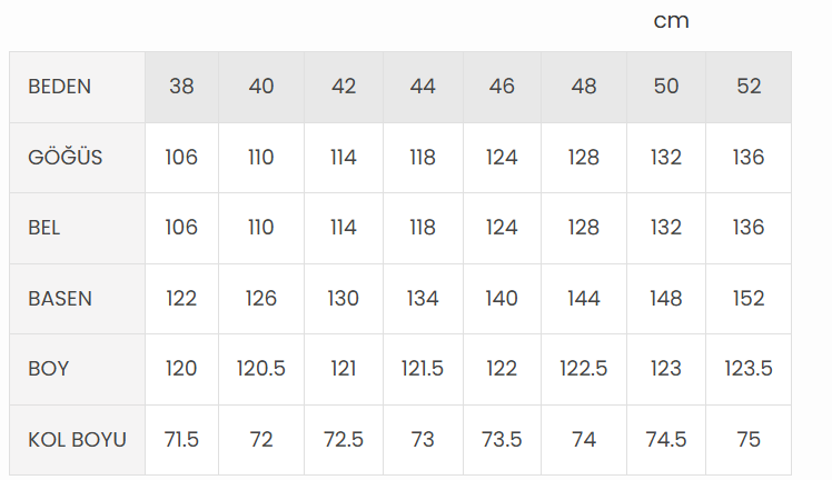 El ile ölçümlerde 2-3 cm farklılık gösterebilir.