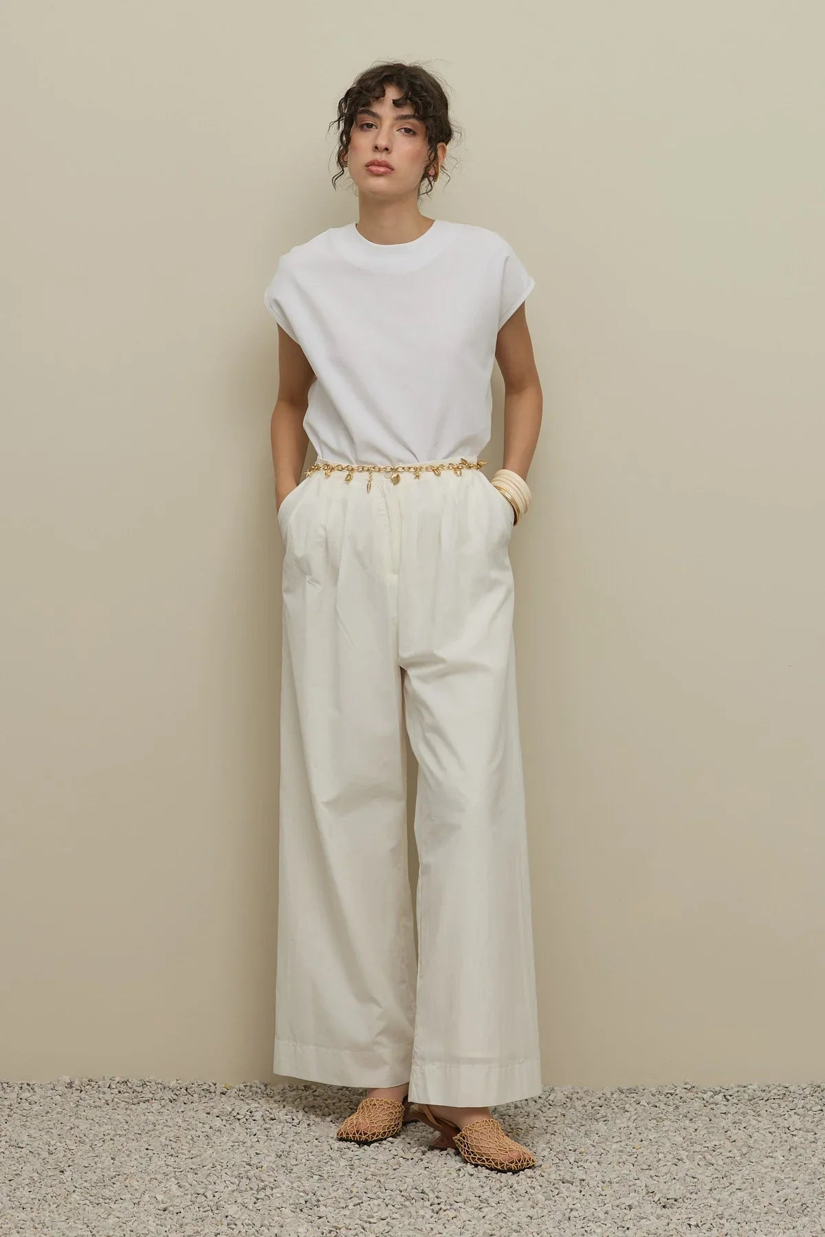 Çok Pileli Vual Pantolon Ekru