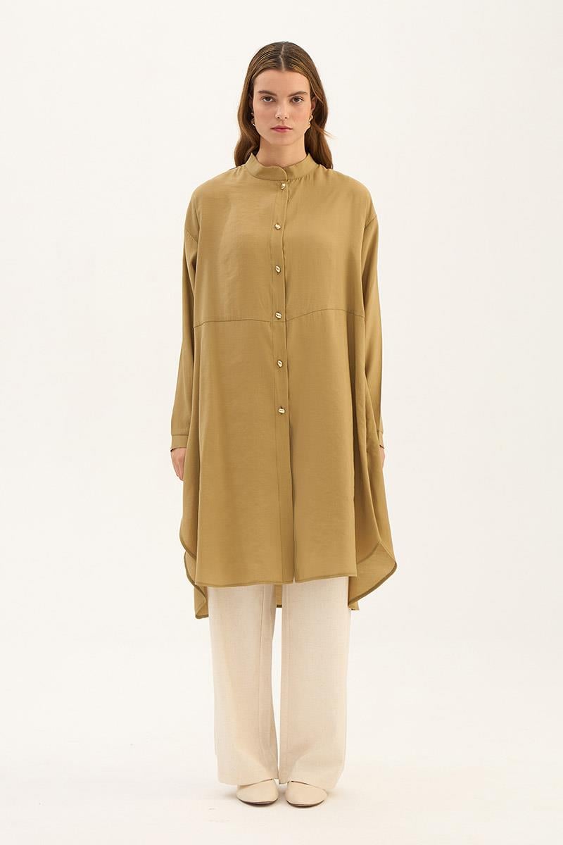 Damla Düğmeli Modal Tunik Zeytin Yeşili